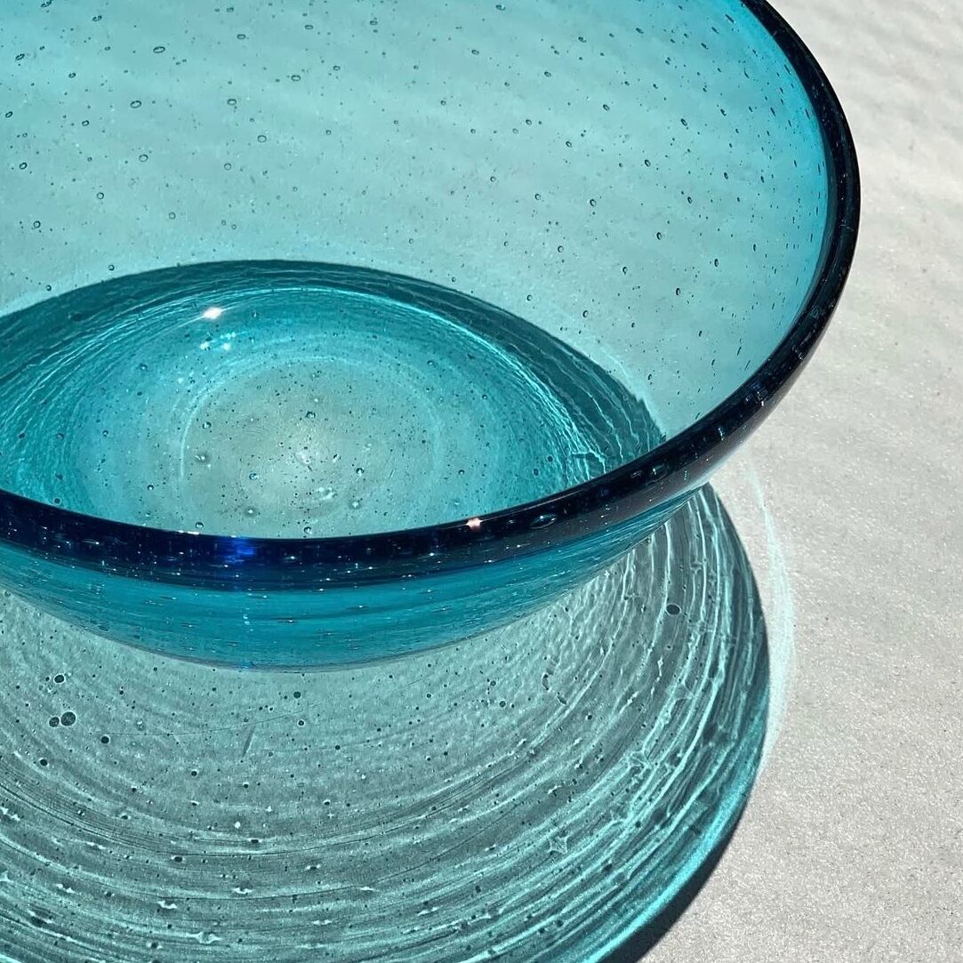 喉越しの爽やかさを求めるシーズン、思わずすすりたくなるそーめんにおすすめのうつわがこちら、琉球ガラスの水色のボウルです。