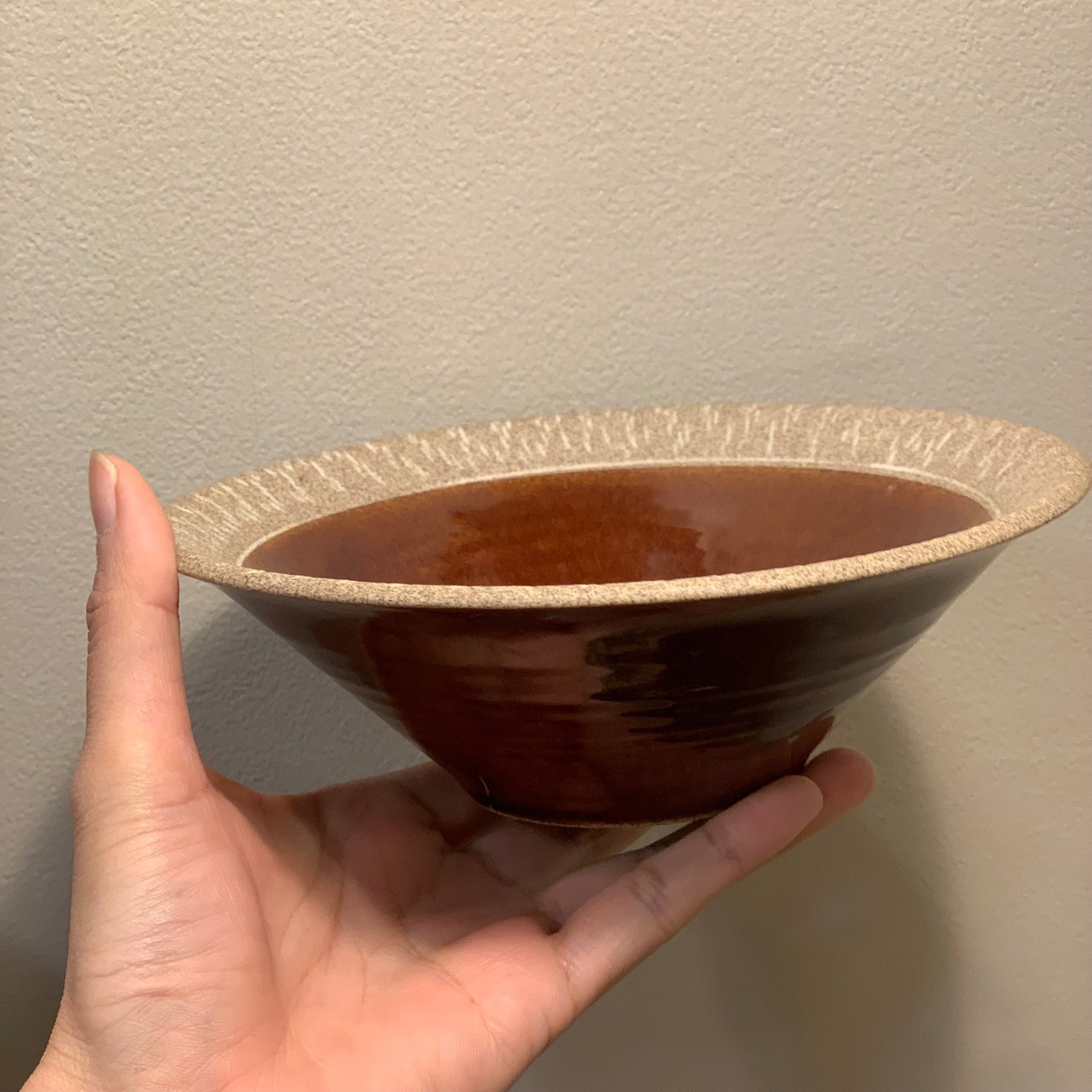 縁部分はマットで質感を感じられるように仕上げ、そこに飛び鉋のアクセントを加えました。