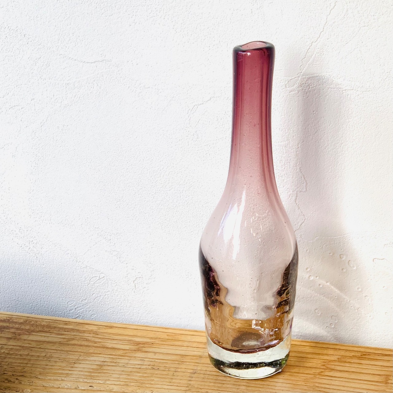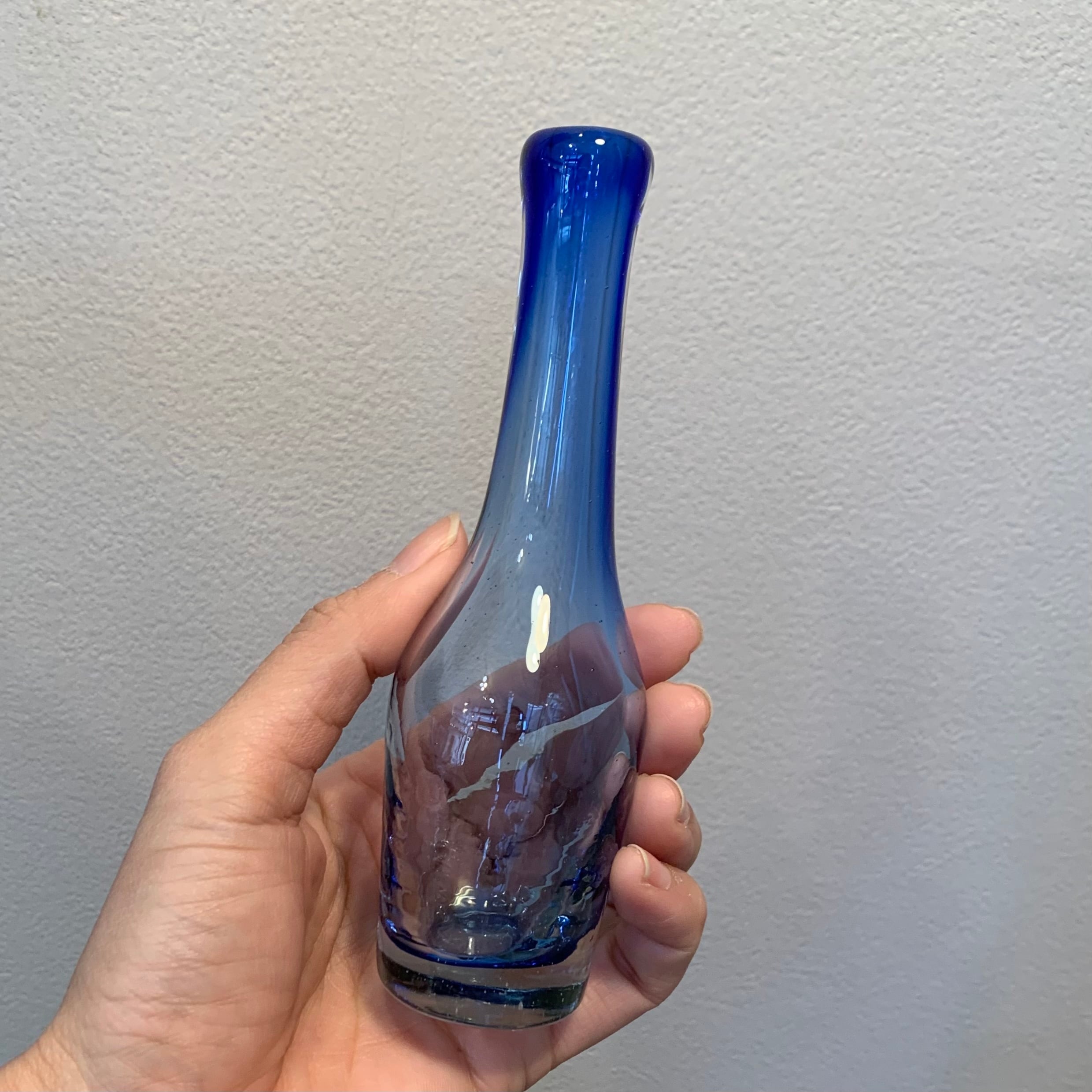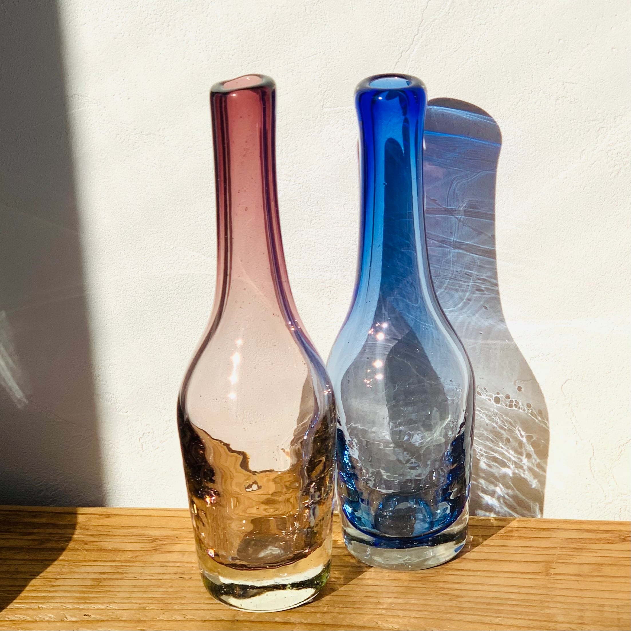 普段の作品とは別にたまに出てくるこのボトルは、グラデーション以外にも底面近くにはうねりもあり、光を通したり水が注がれるとシンプルな見た目とは違った個性を感じることができます。