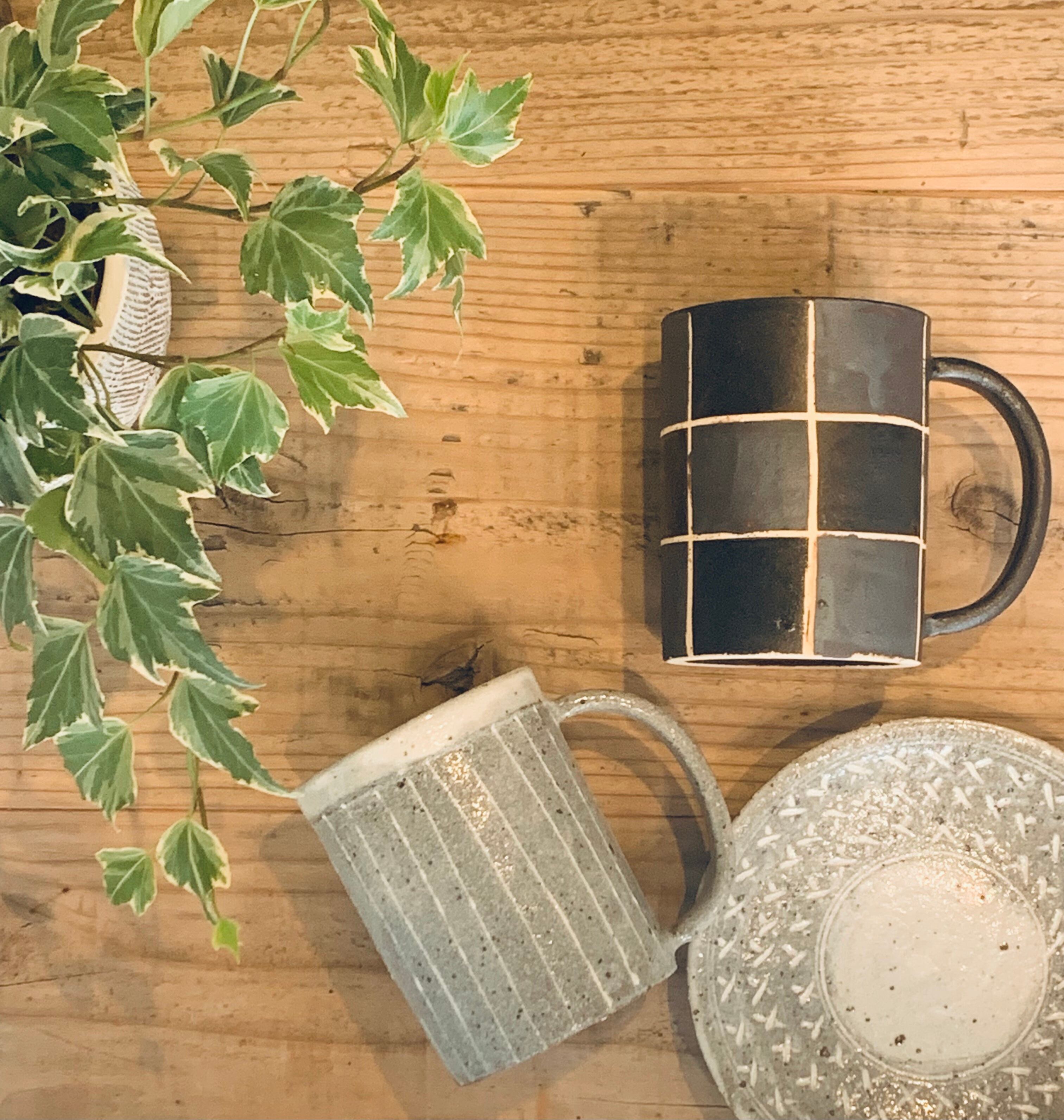 昔ながらの技法と市松柄を組み合わせると、現代の食卓に合うモダンなうつわの出来上がり。
