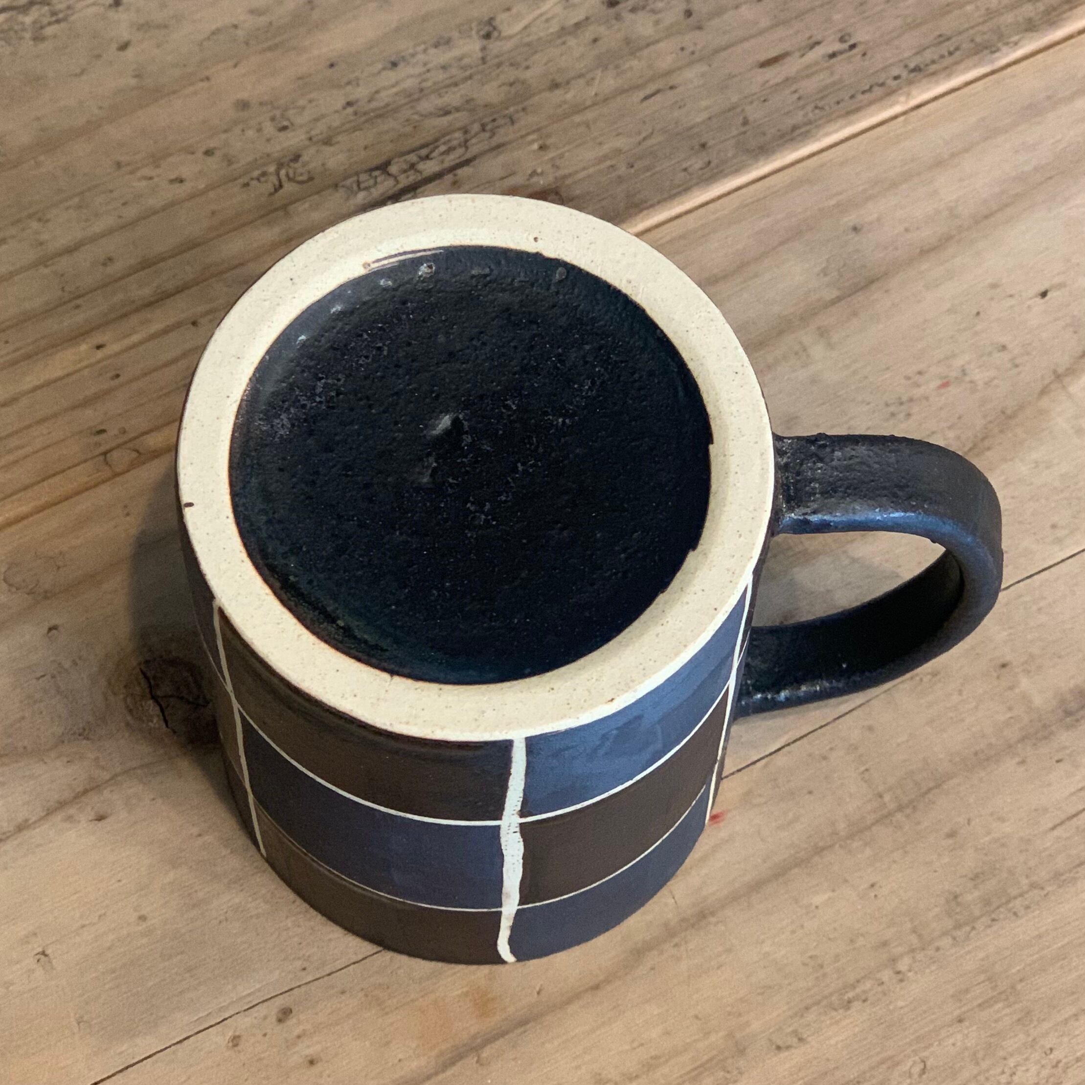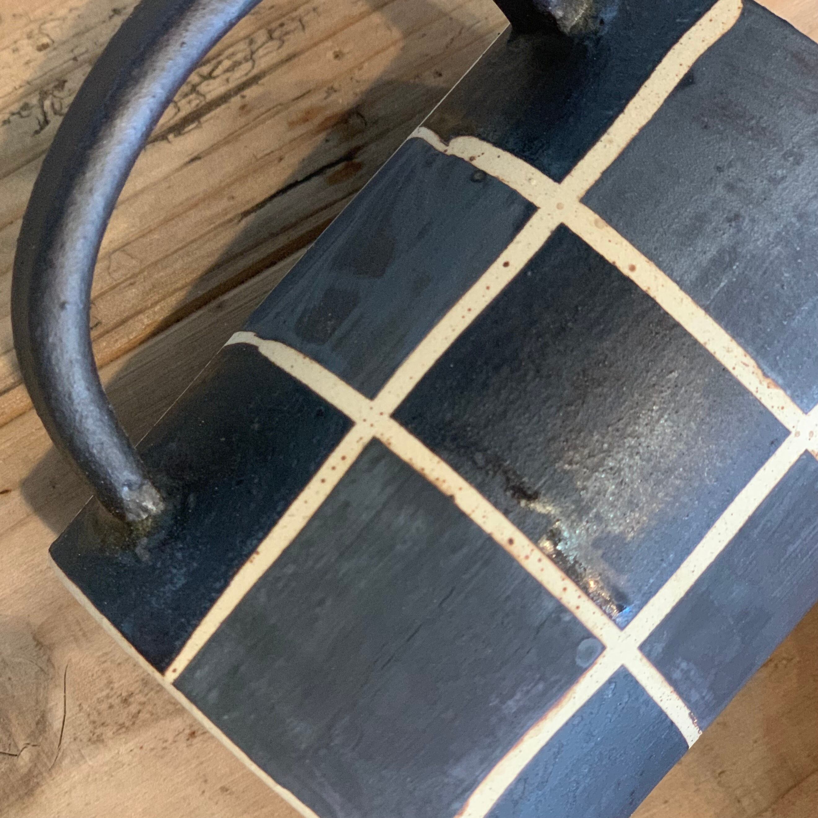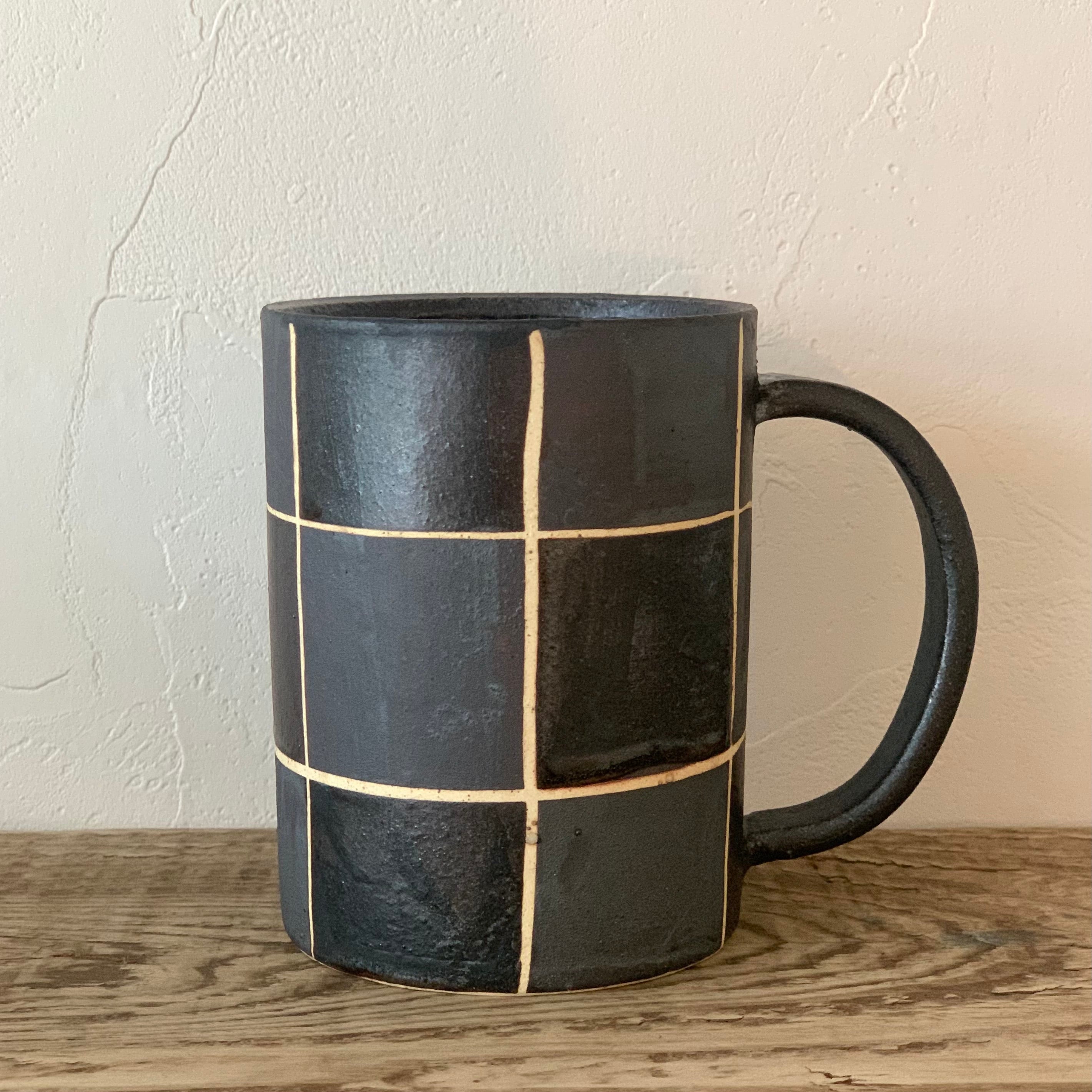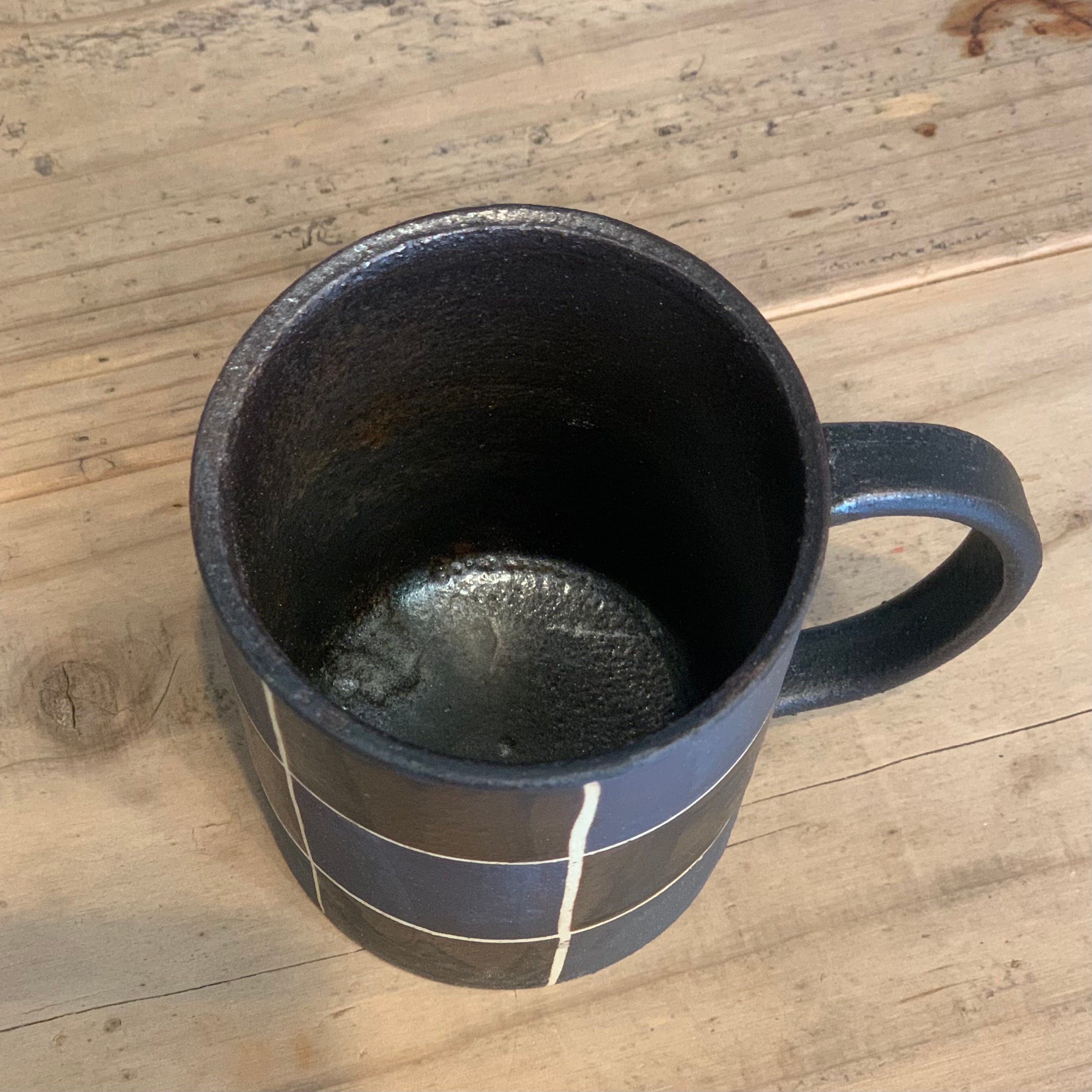 昔からの加飾方法のひとつで鉄を原料にした顔料を筆で巻く「錆巻き」を施したマグです。