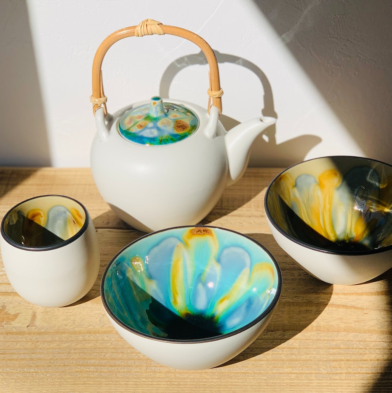 「結晶釉」「窯変釉」など温度調節の難しい釉薬を巧みに使い、独創的な色彩と光沢を表現しています。モノづくりへの強い探求心で、他社が真似しようとしても真似できない表現を生み出しています。