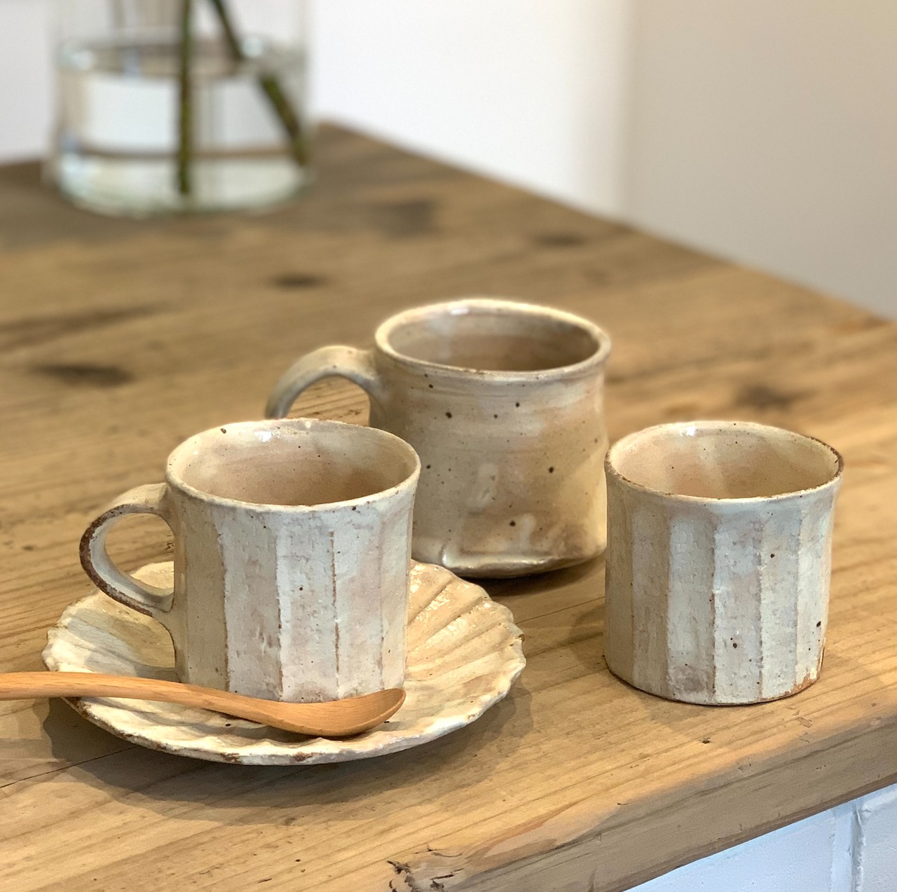 笠間焼らしい土の質感はもちろん、粉引による色の濃淡の差が魅力的です。