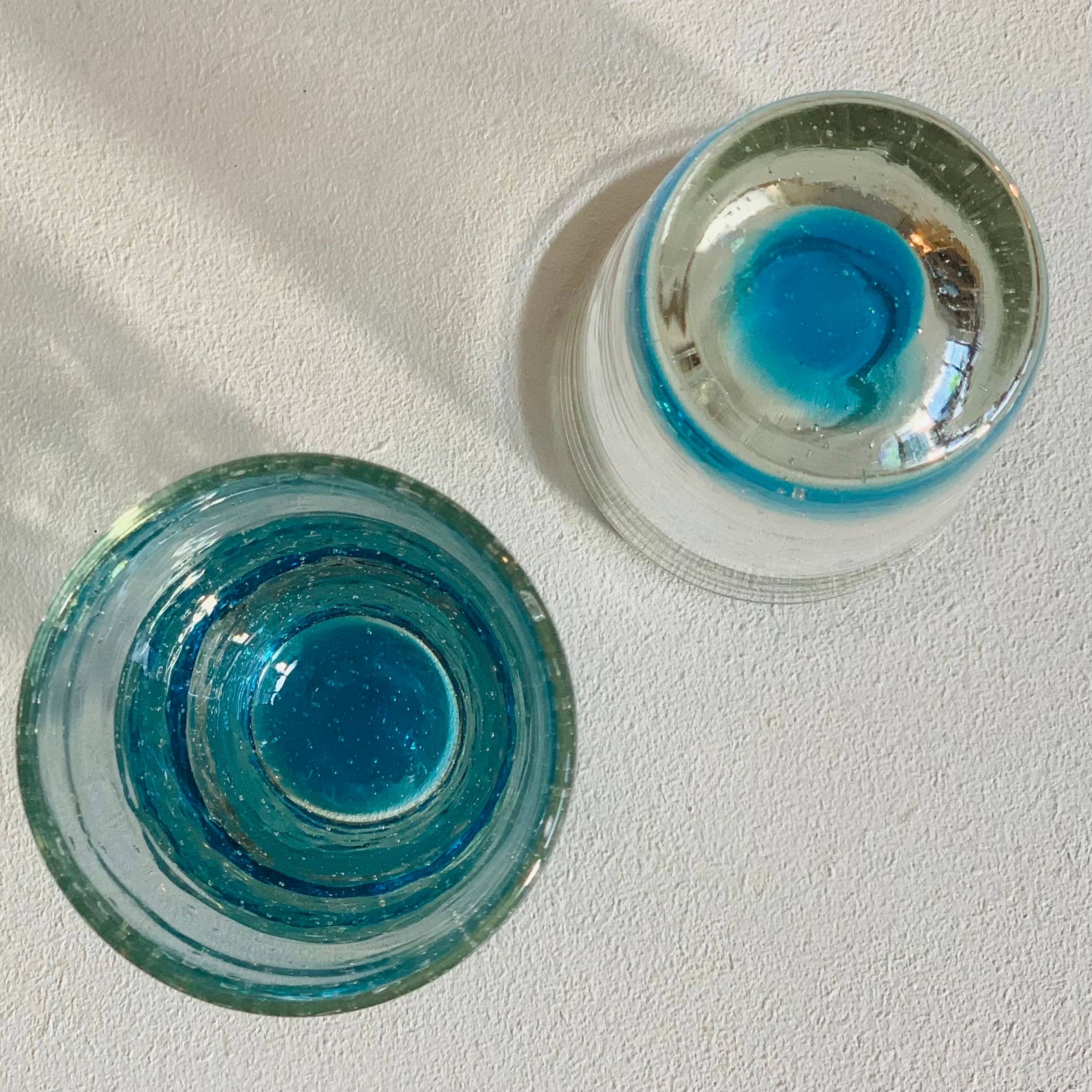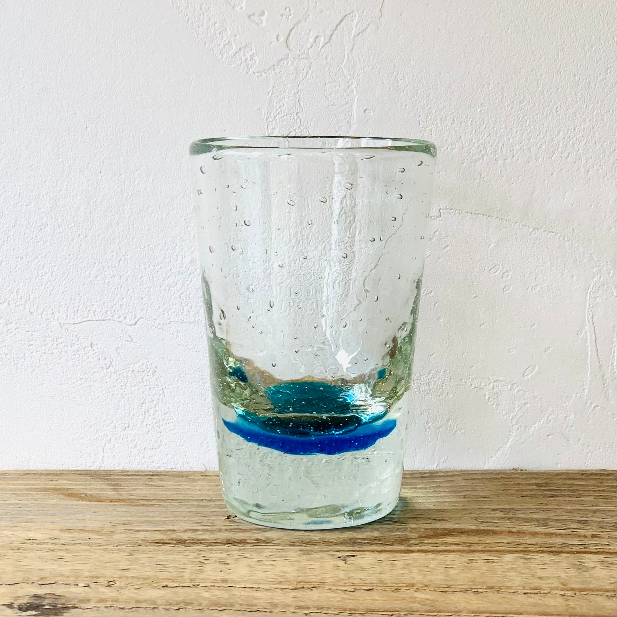 ガラス工房 清天 気泡ロングショットグラス 水色 【琉球ガラス】