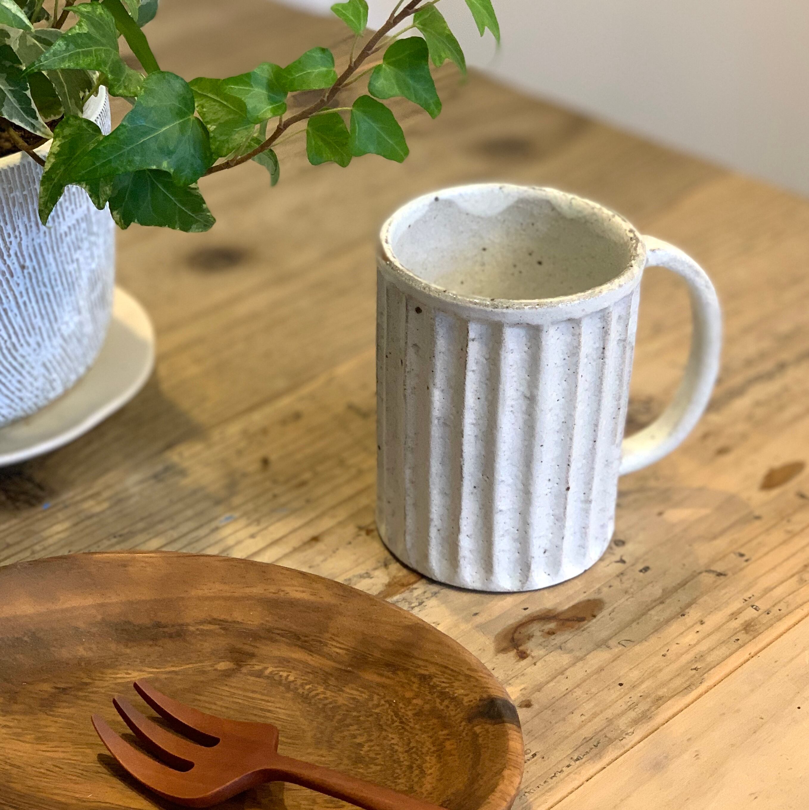 手仕事感満載の鎬(しのぎ)の入ったマグカップ。