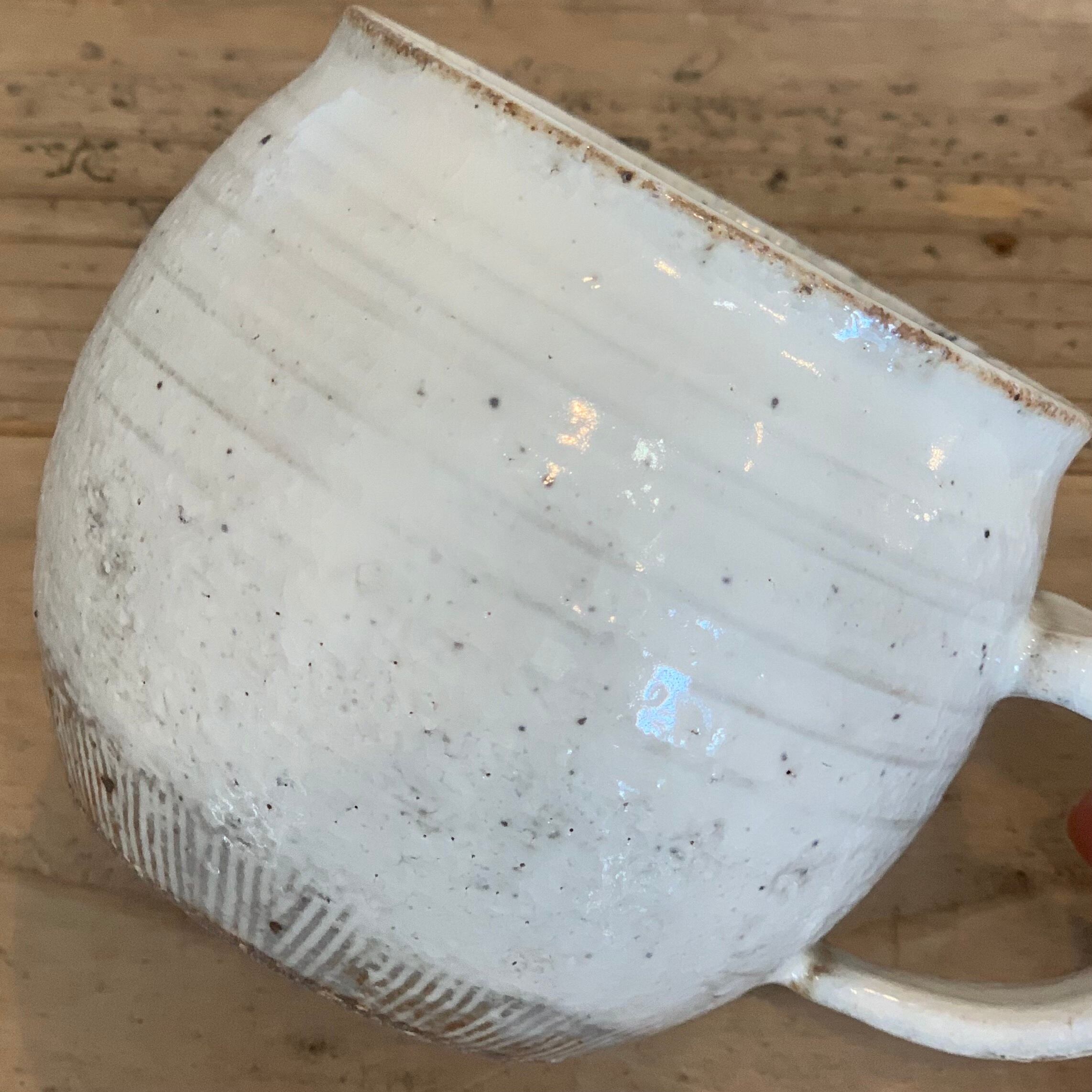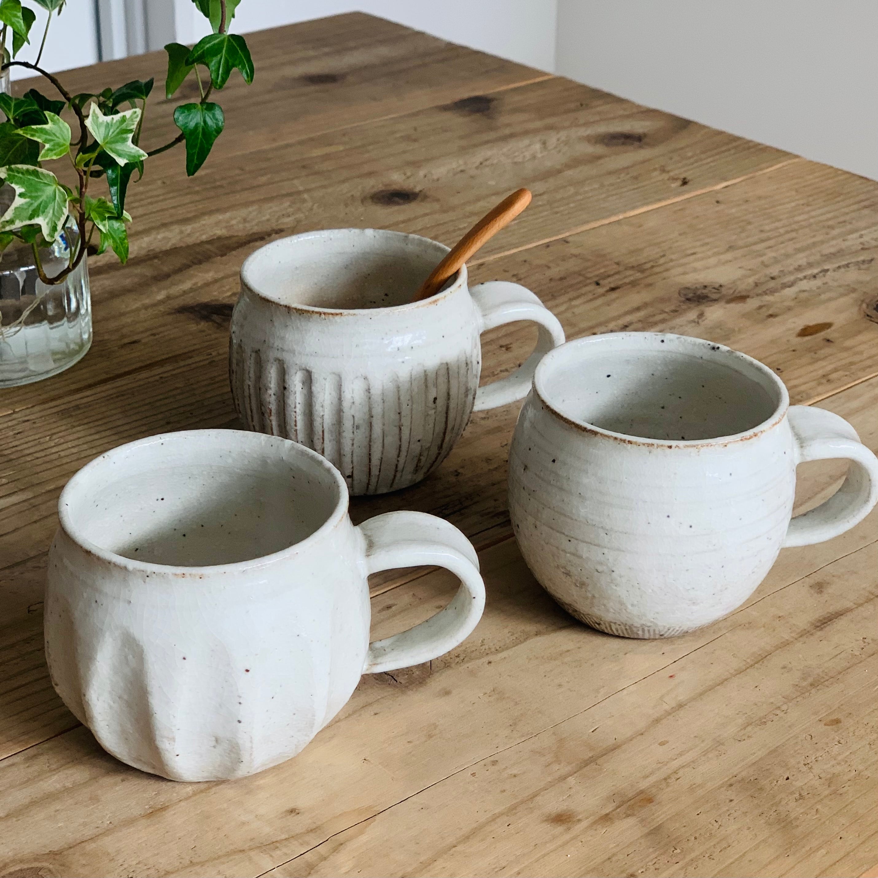粉引(こひき)という技法で作られた美濃焼のマグカップは、