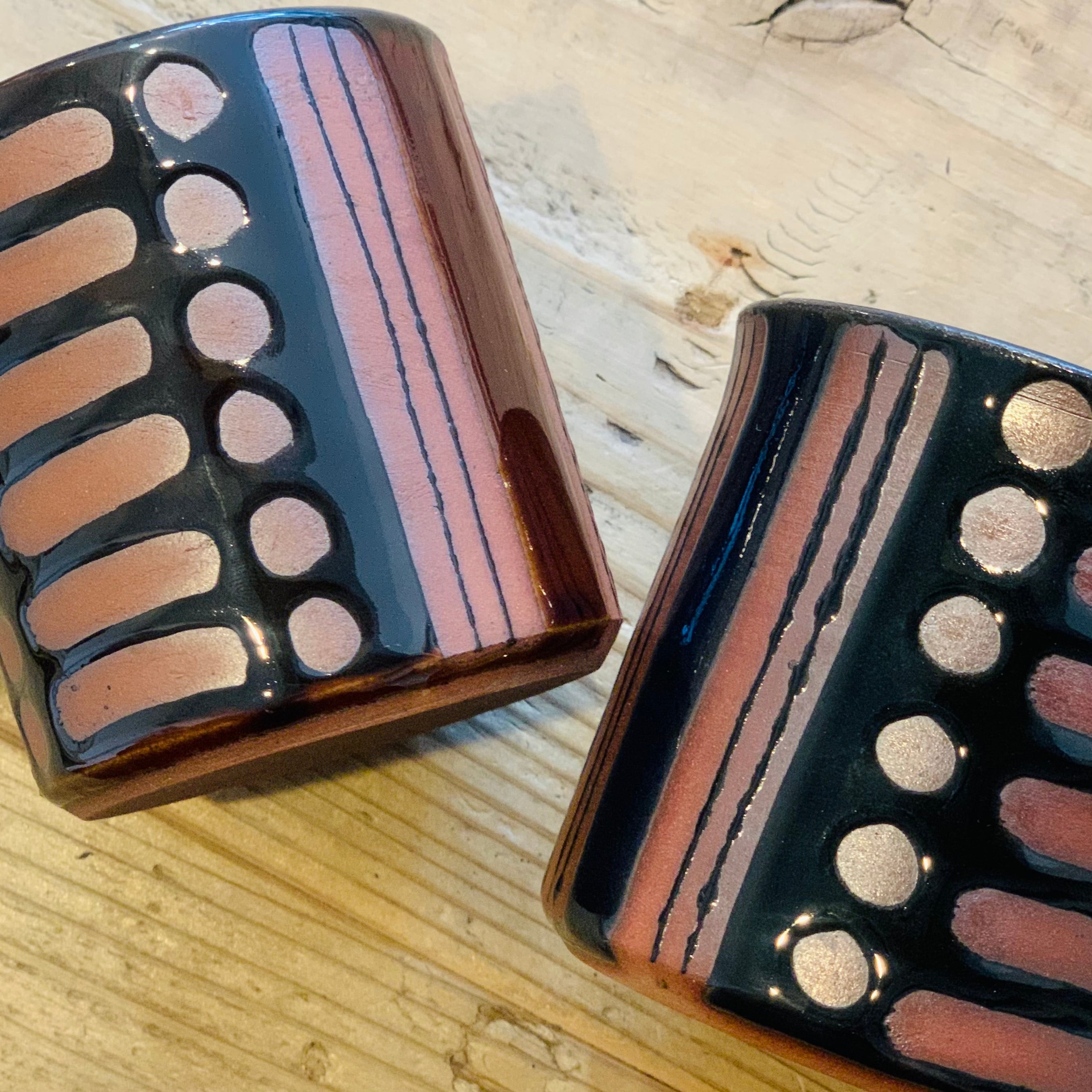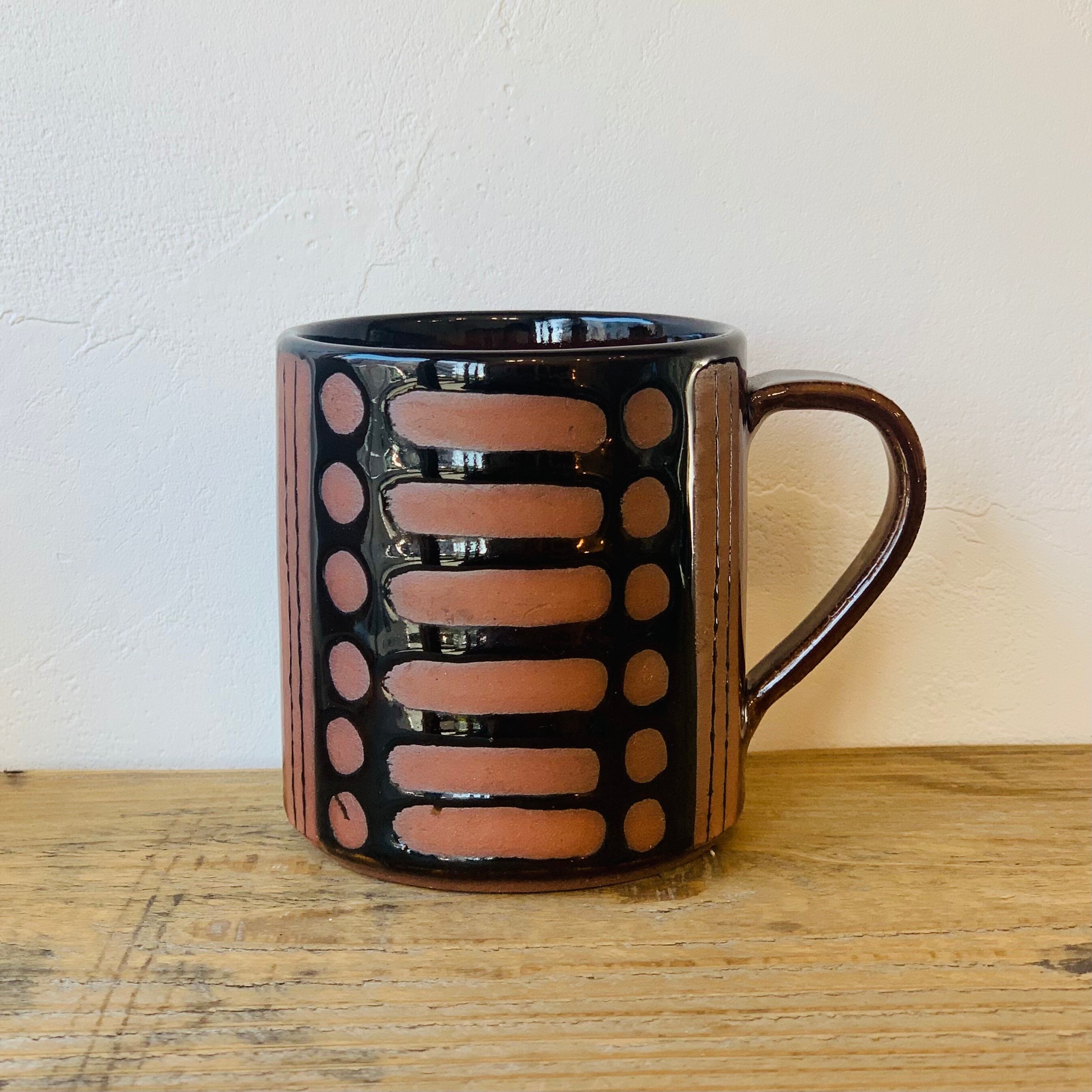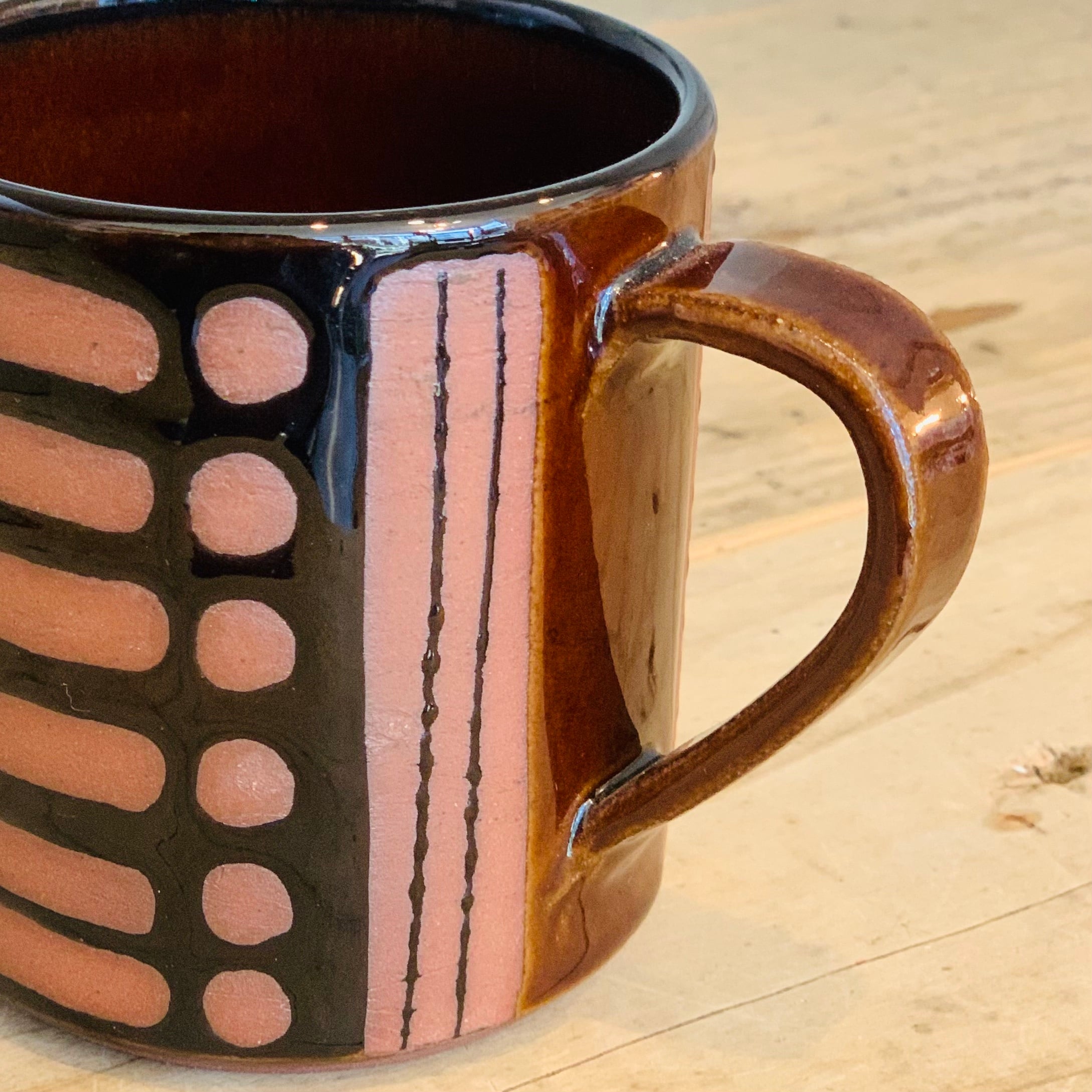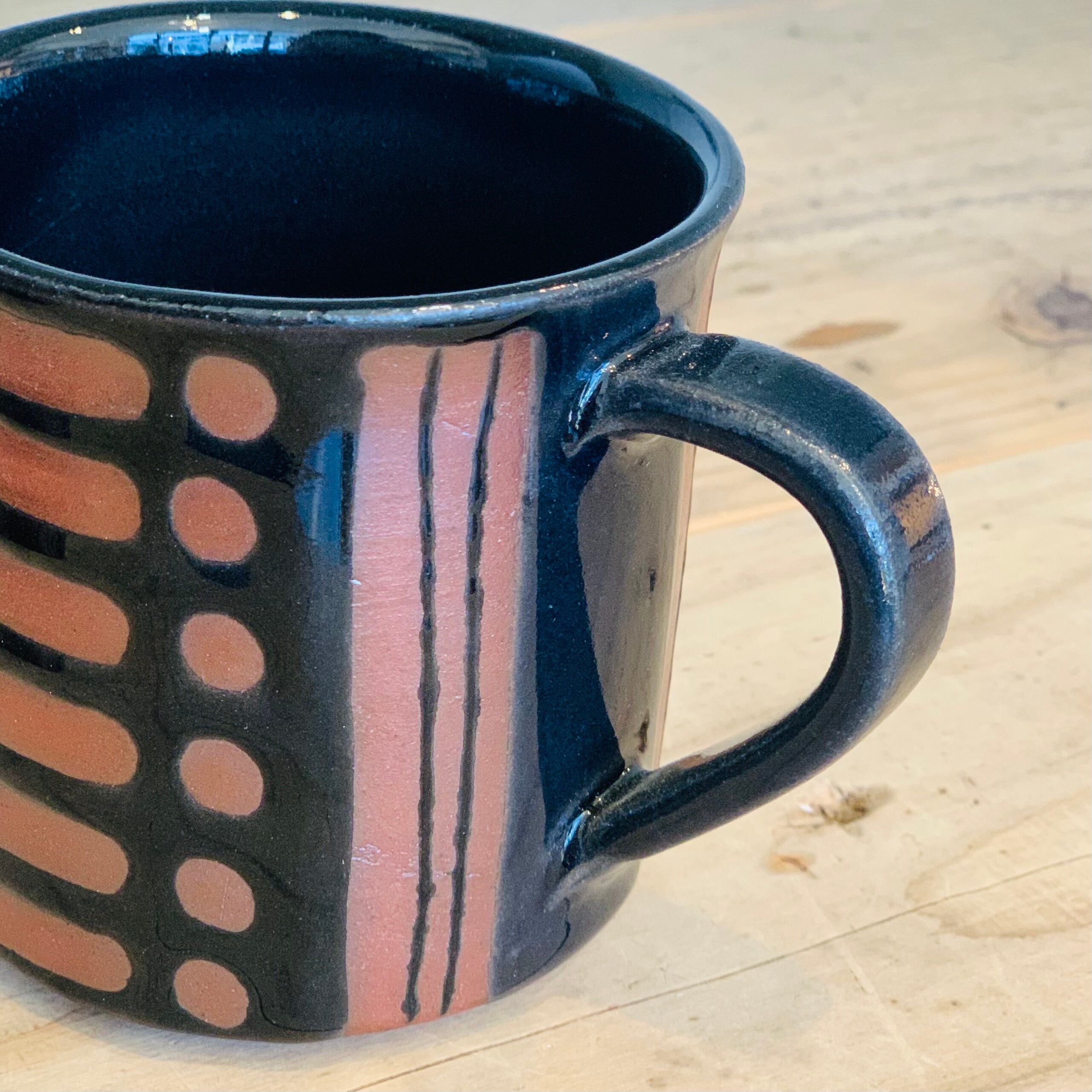 土っぽい模様は上から描かれているのかな?と思って見てみると、なんと逆でした!光沢感の無い部分が一段低くなっており、手で包み込むと程よく指がかりが良い感じです。