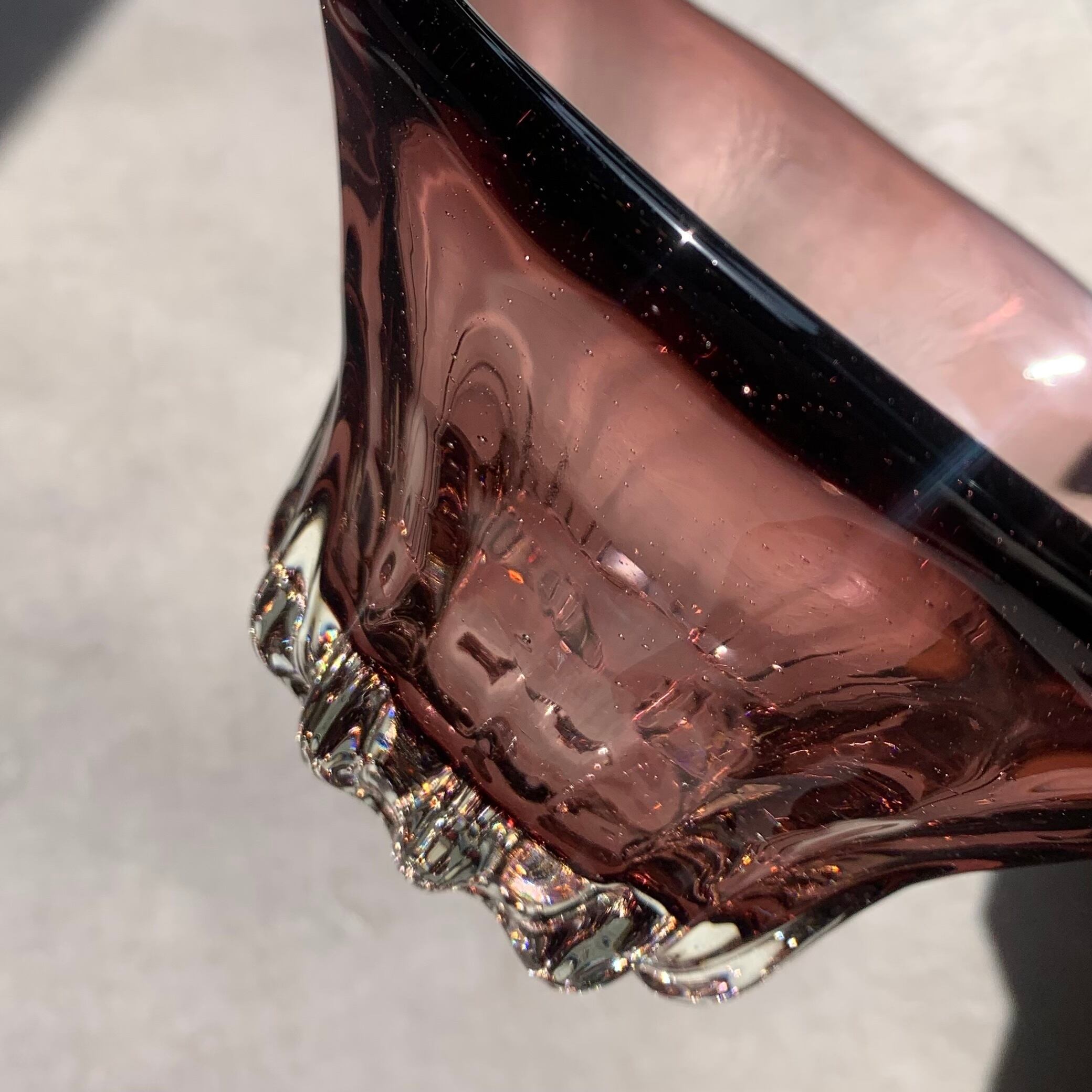 複雑な捻りの加わったグラスのため、サイズ・容量・色味の個体差がしっかりと有り、一つひとつの個性をより強く感じられるデザインとなっております。
