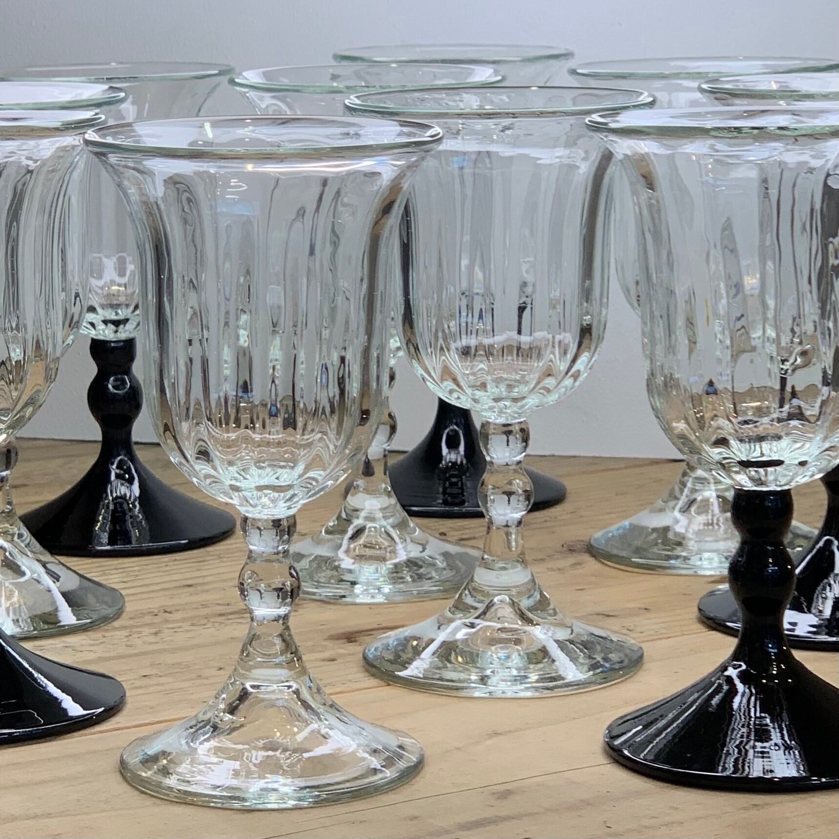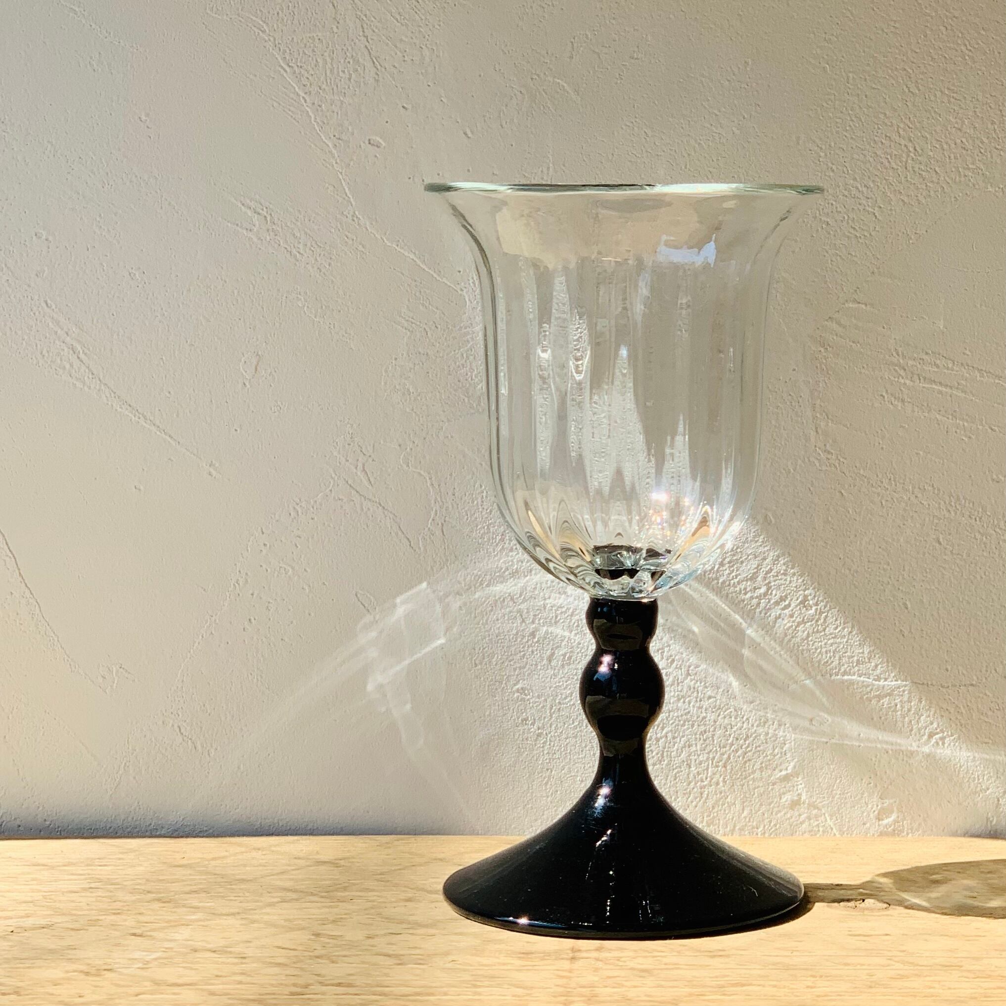 琉球ガラス工房glass32 縦モールワイングラス 足黒