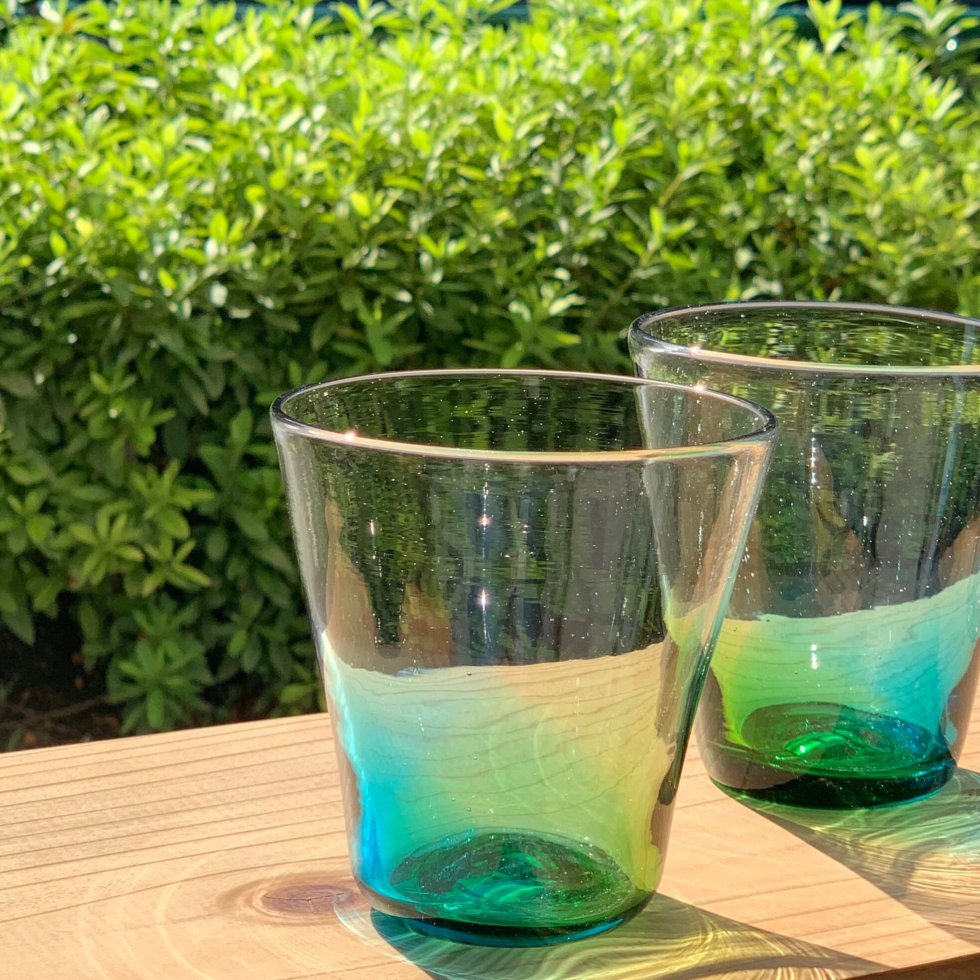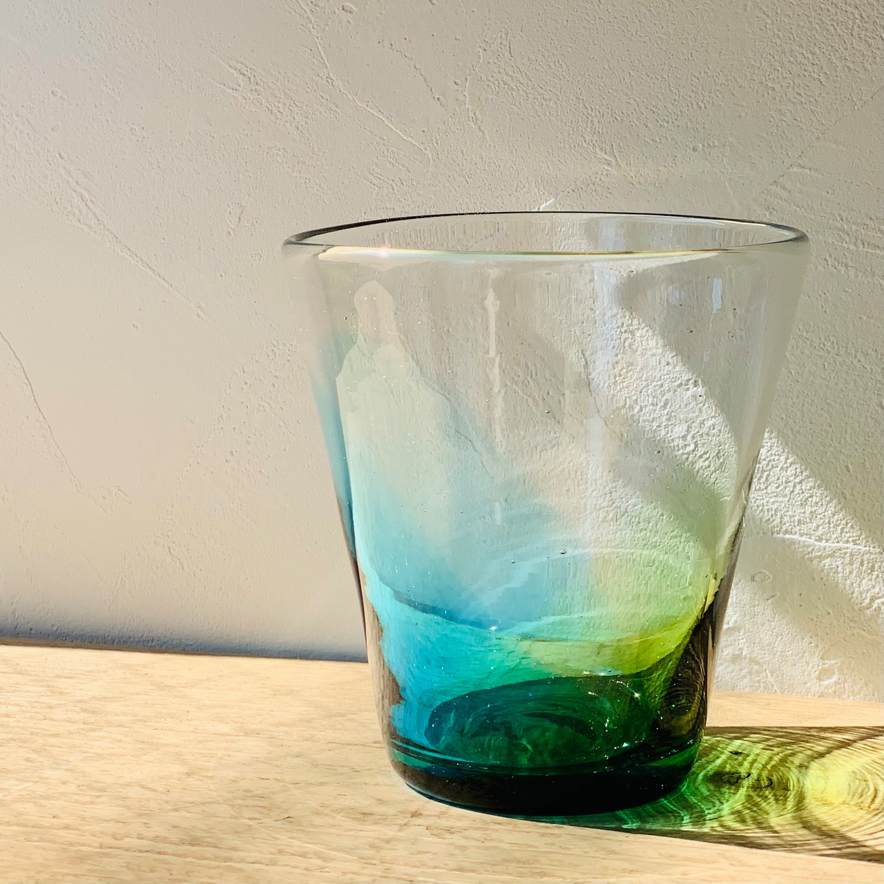 再生ガラス工房てとてとさんの、その色合いに思わず見惚れてしまうグラス。