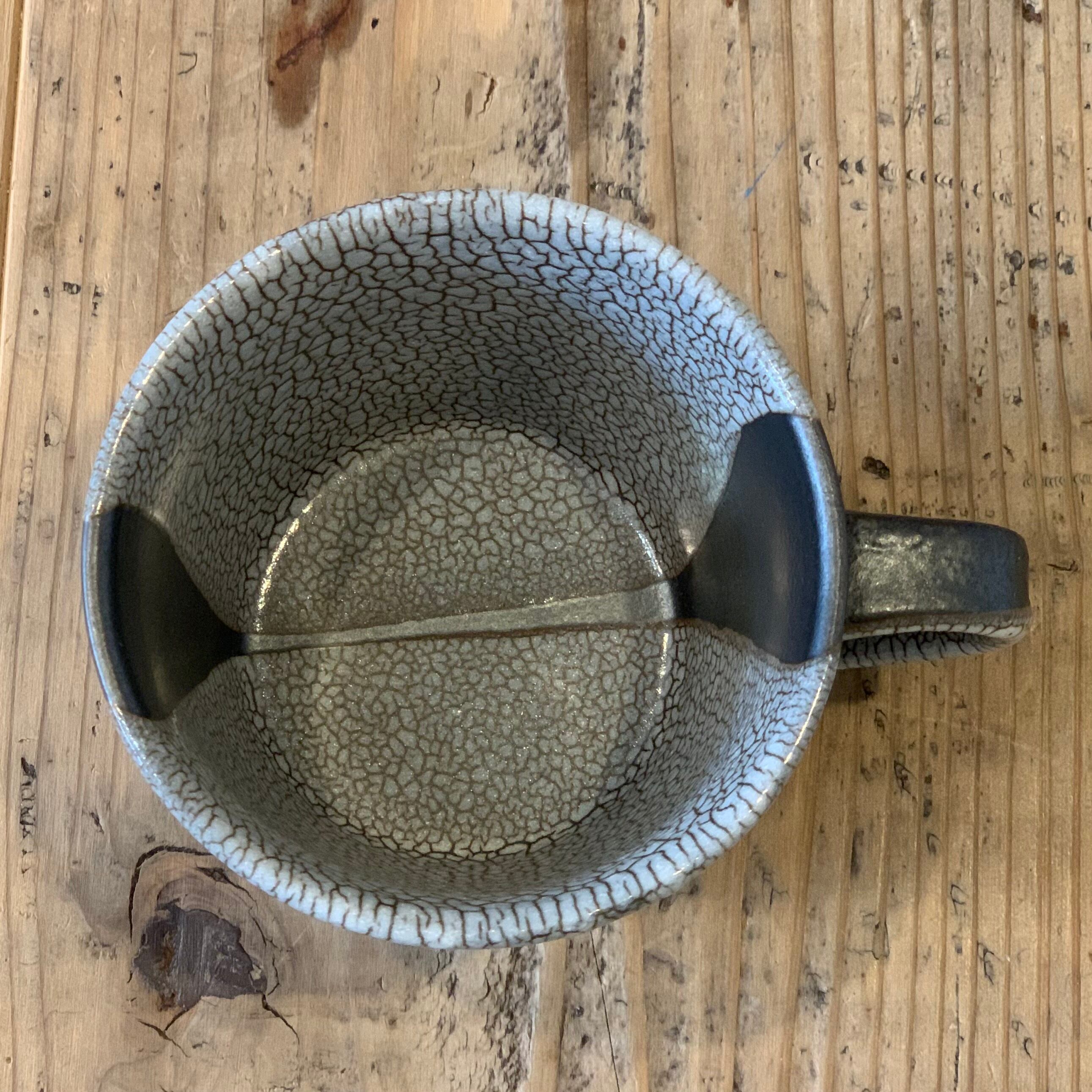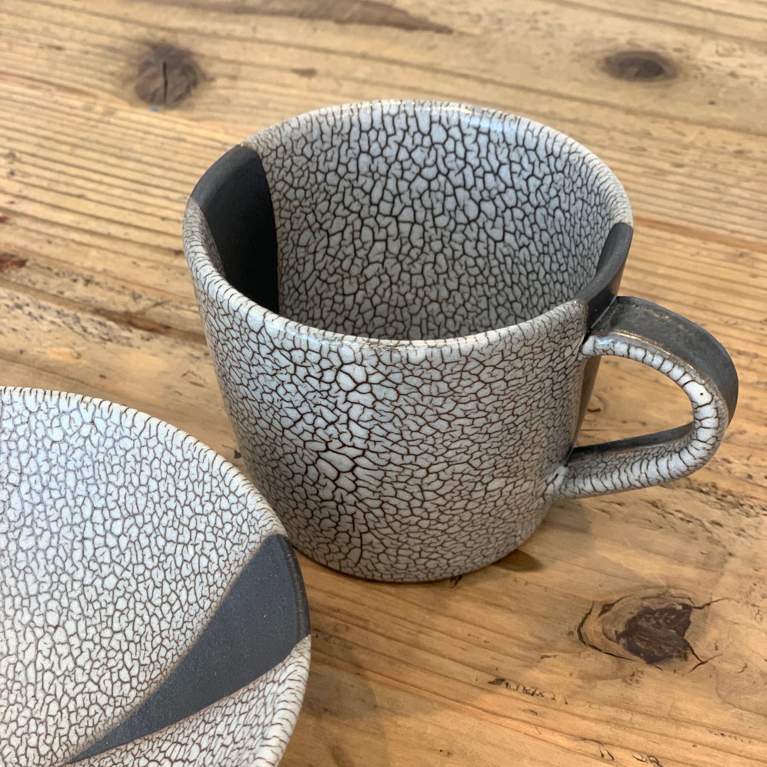 正陶苑さんの技が光る梅花皮(かいらぎ)のマグ。