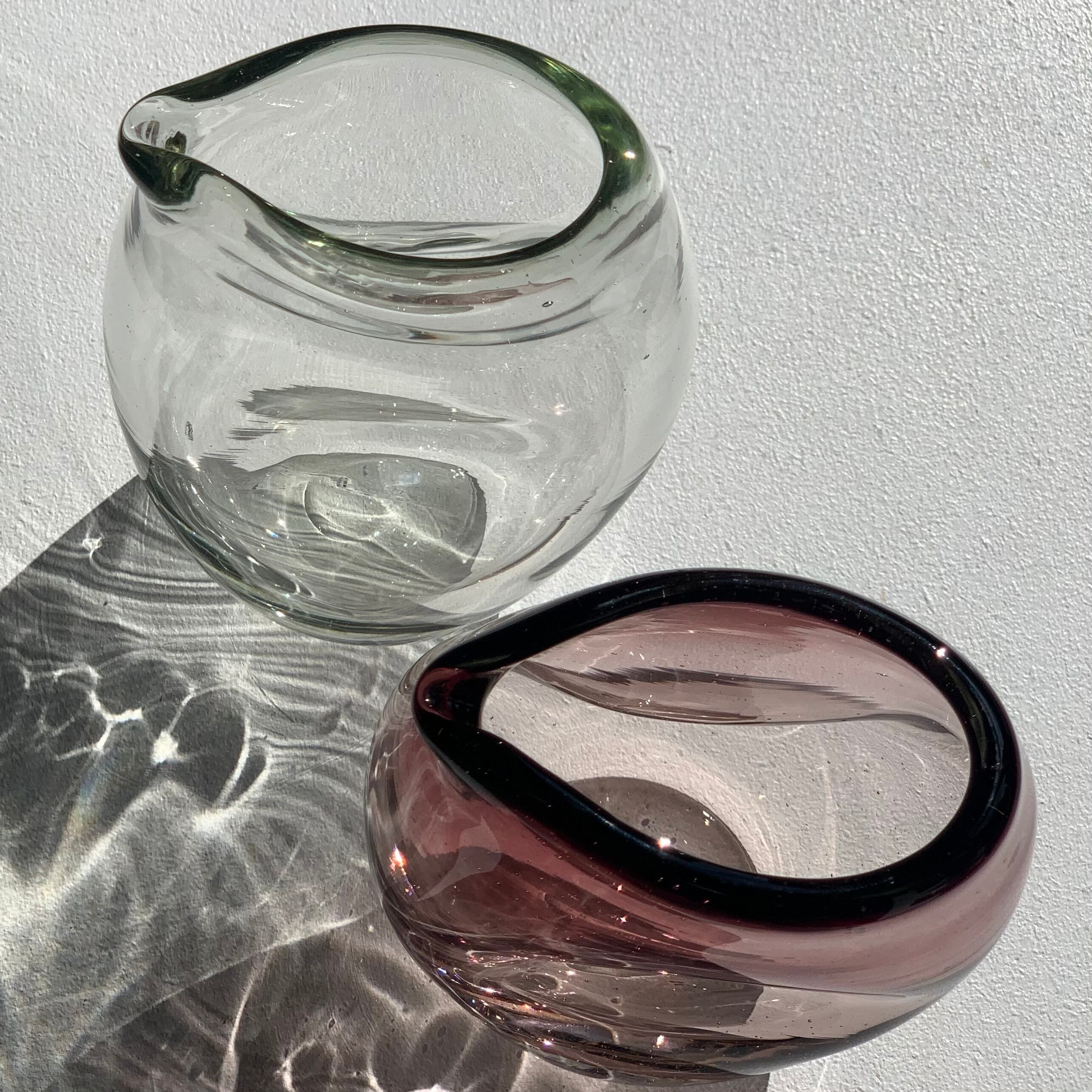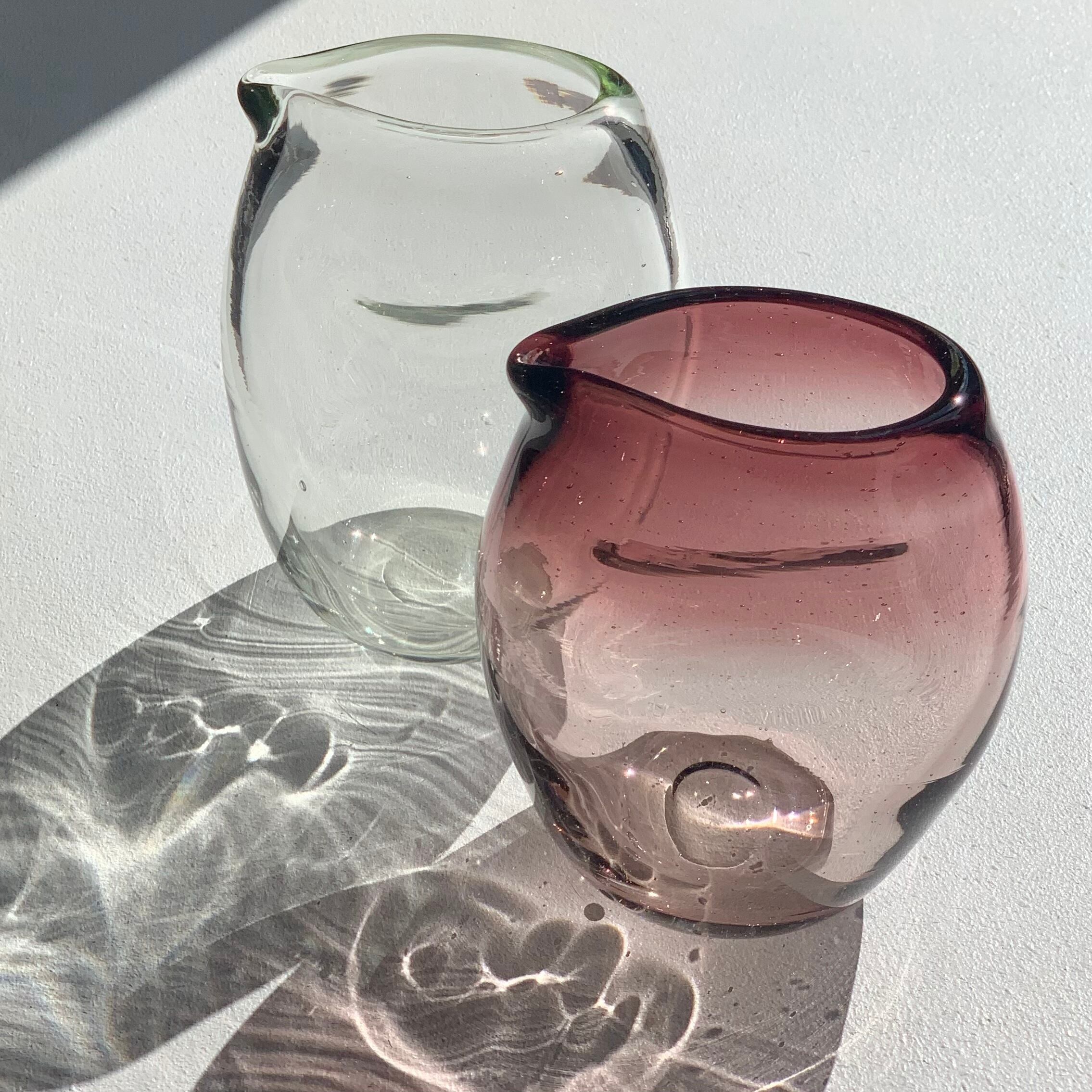陶磁器の徳利だと親指側であったり両側が同様に胴体がくぼんでいるものもありますが、吹きガラスになると意外と見つからず。