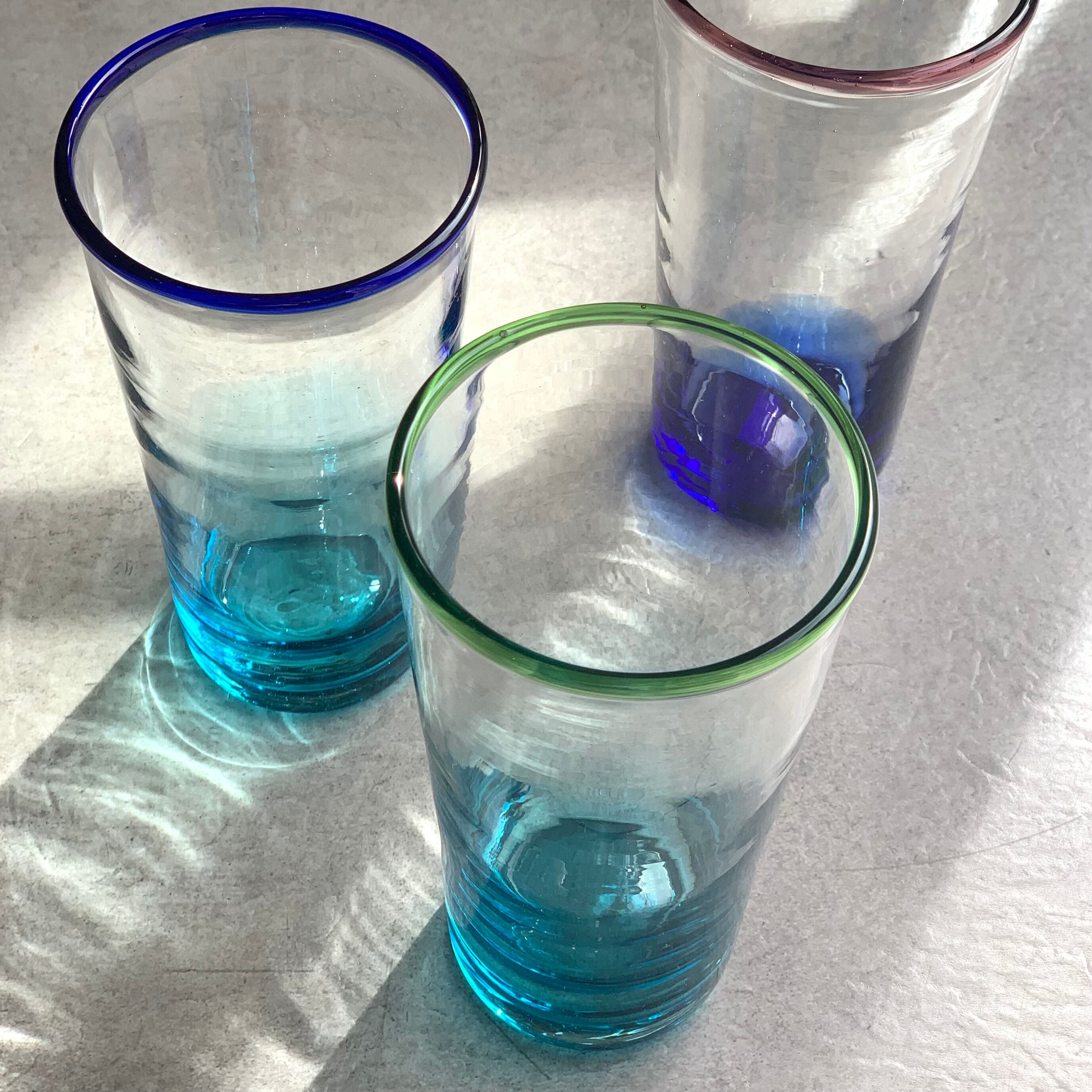 琉球ガラスのグラスはタルグラスやロックグラスなど背が低めのグラスをよく見かけます。