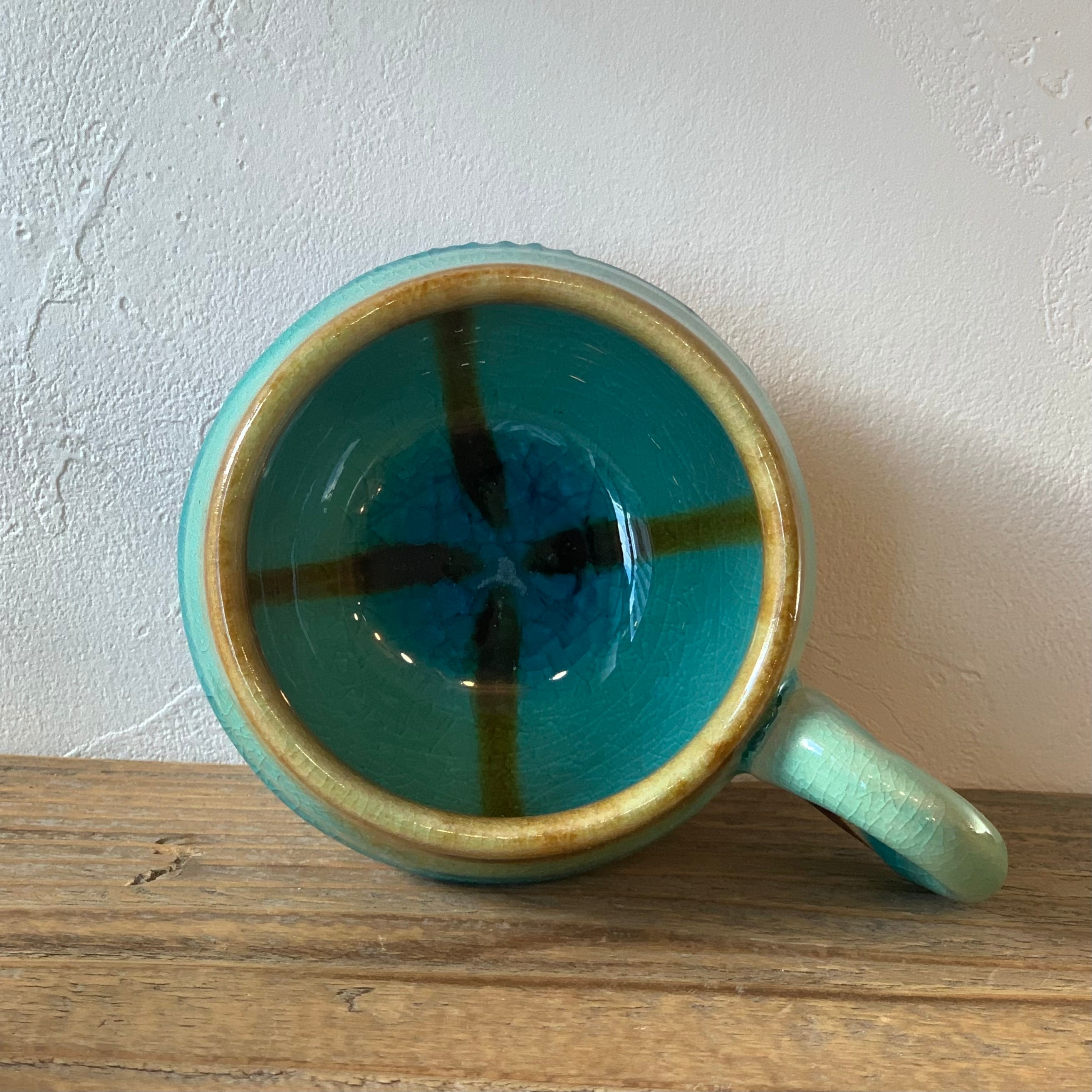 底面に厚く溜まった釉薬の青が深い海の青のようで、遠浅のクリアで美しい海も深い海も楽しめる沖縄のイメージに合ったデザインです。