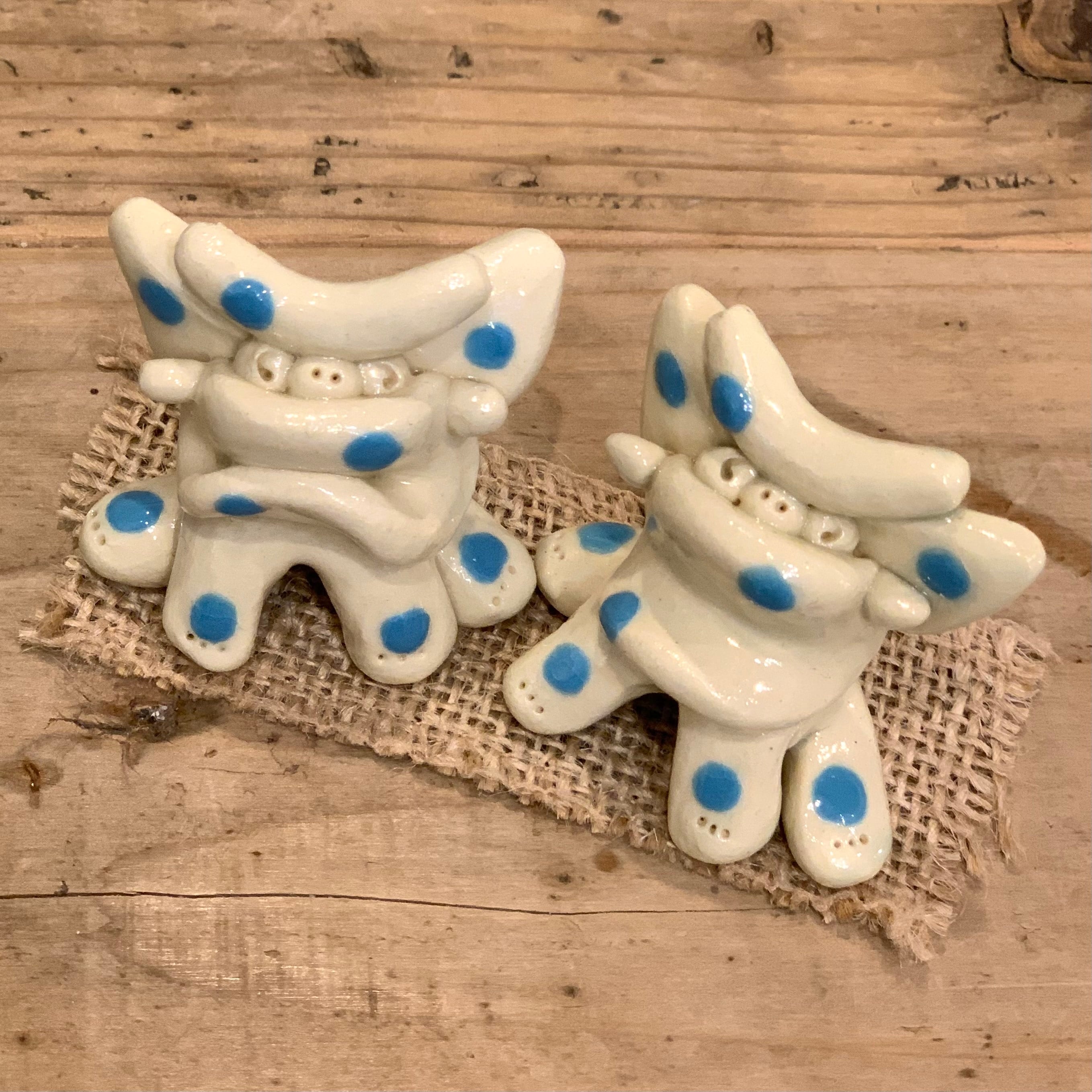 眺めていると思わず表情をマネしてしまいそうな、愛嬌のある表情のペアシーサー。