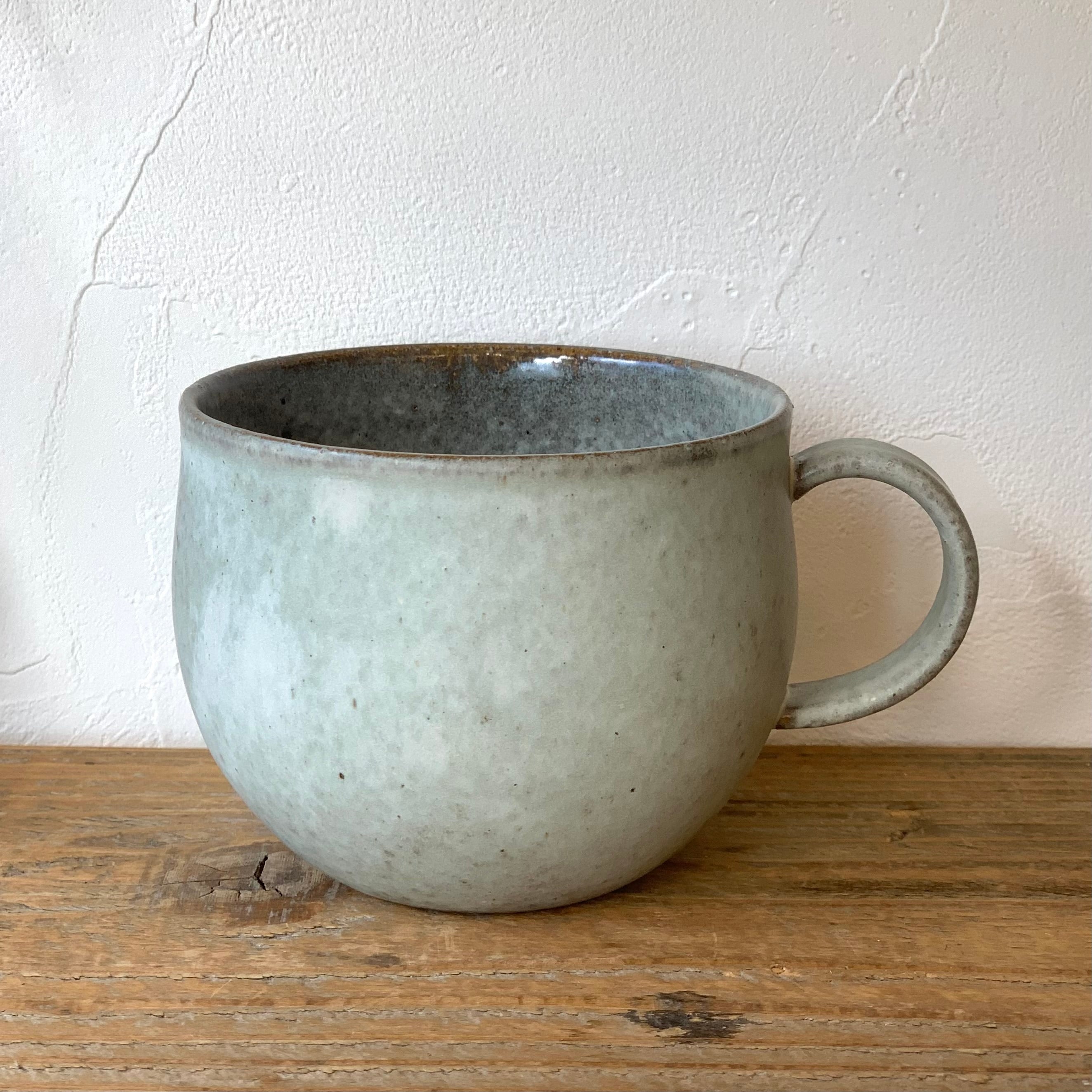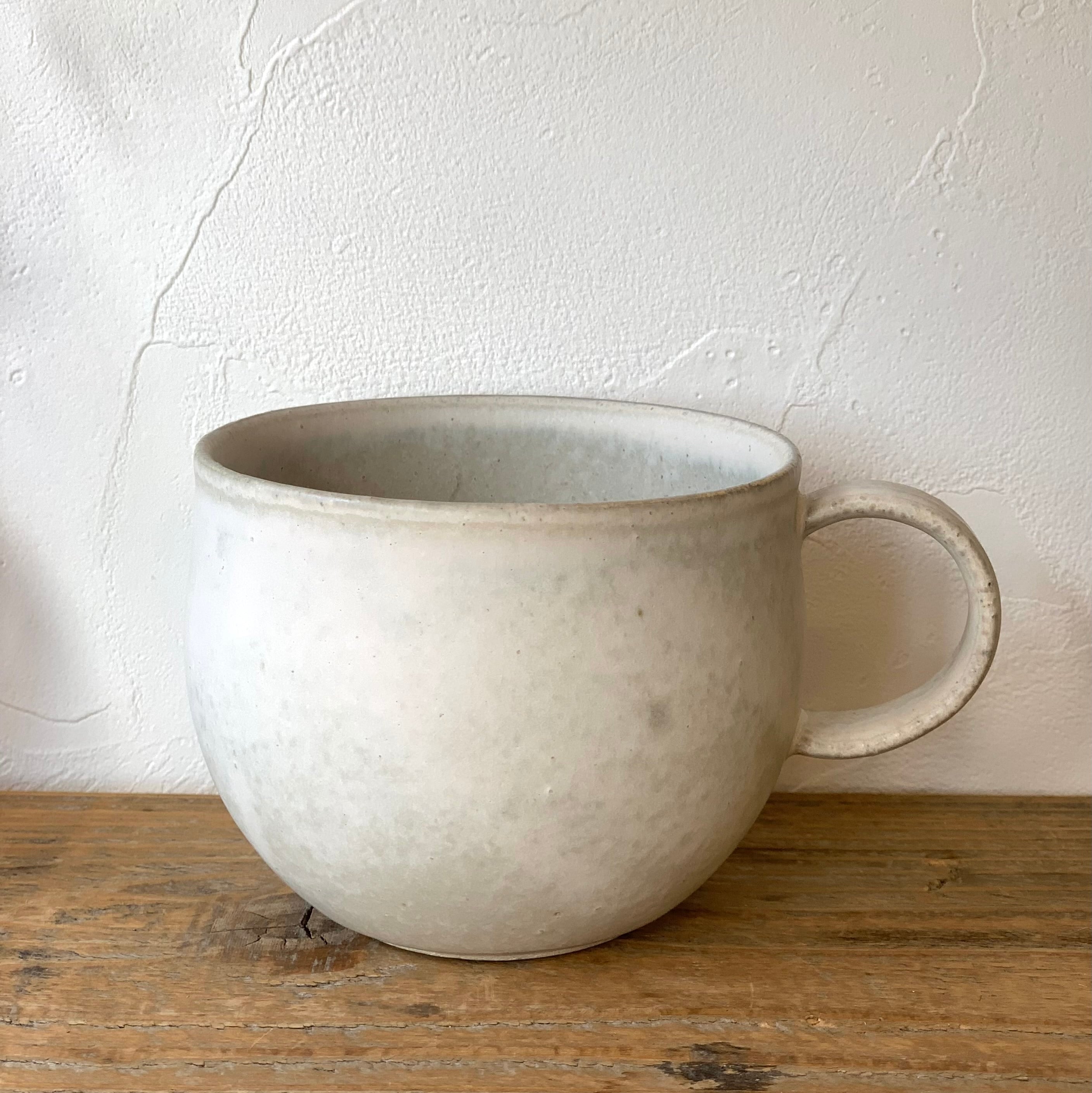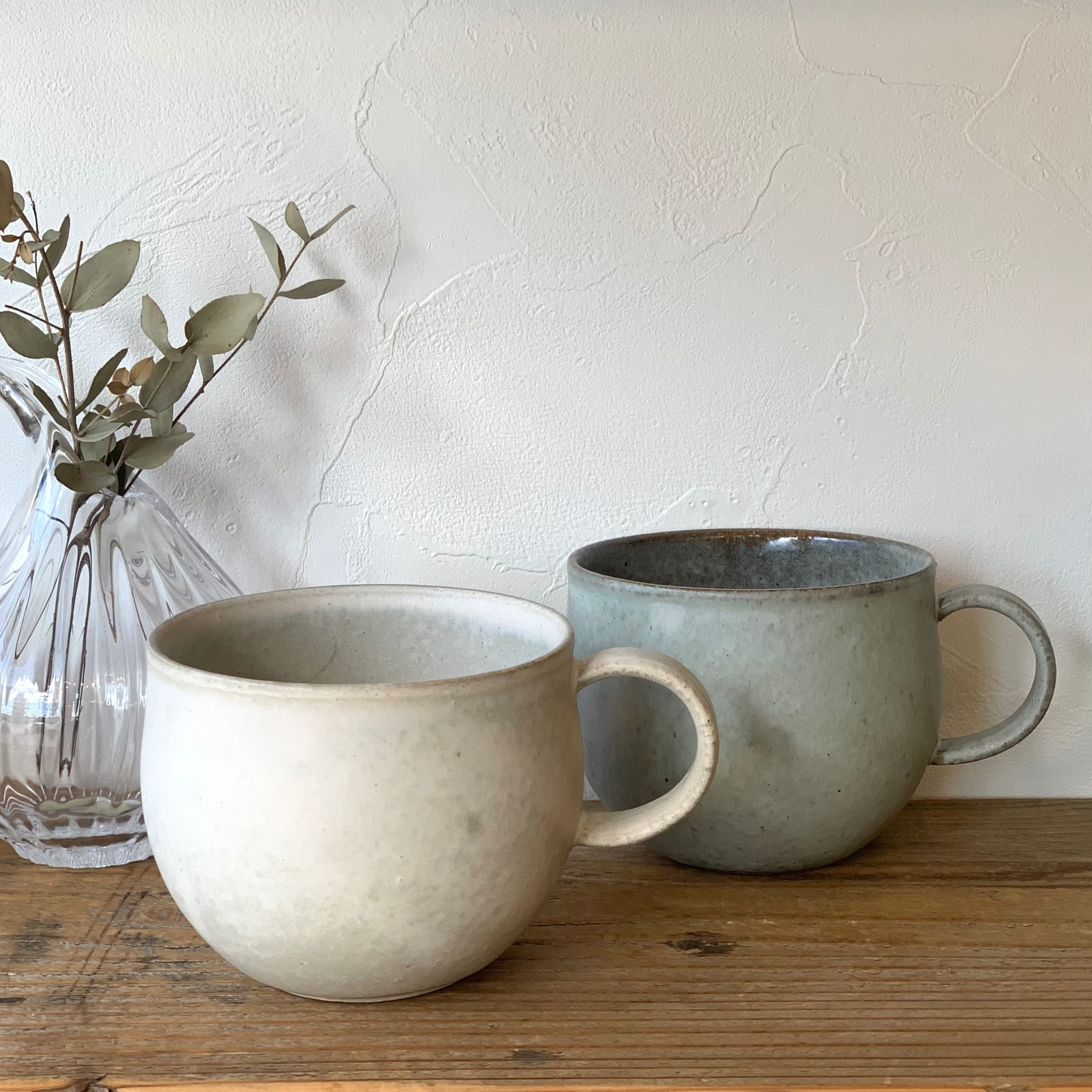 陶器ではあまり見ない薄作りと、両手で包み込みたくなるころんとした丸みが愛らしいマグカップ。