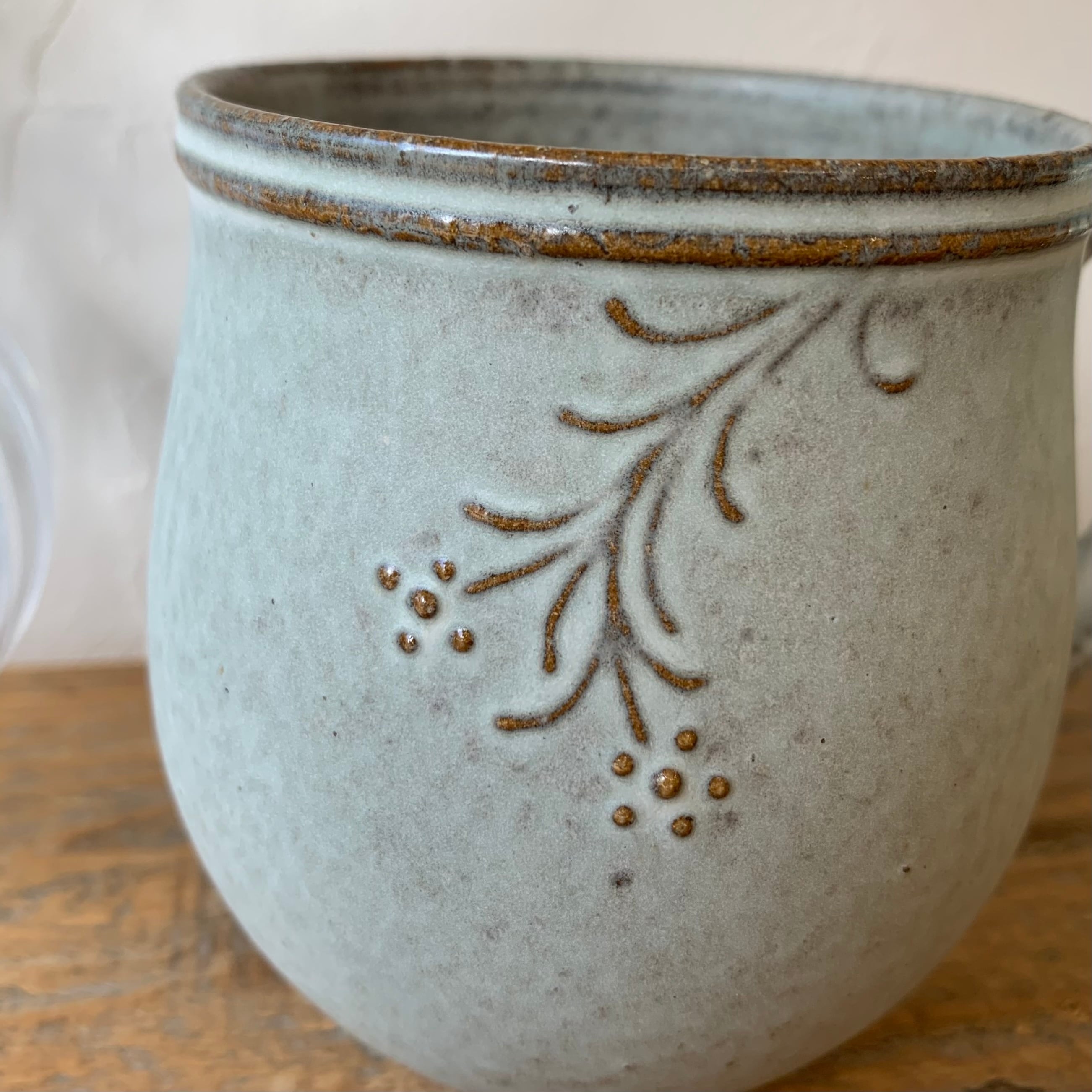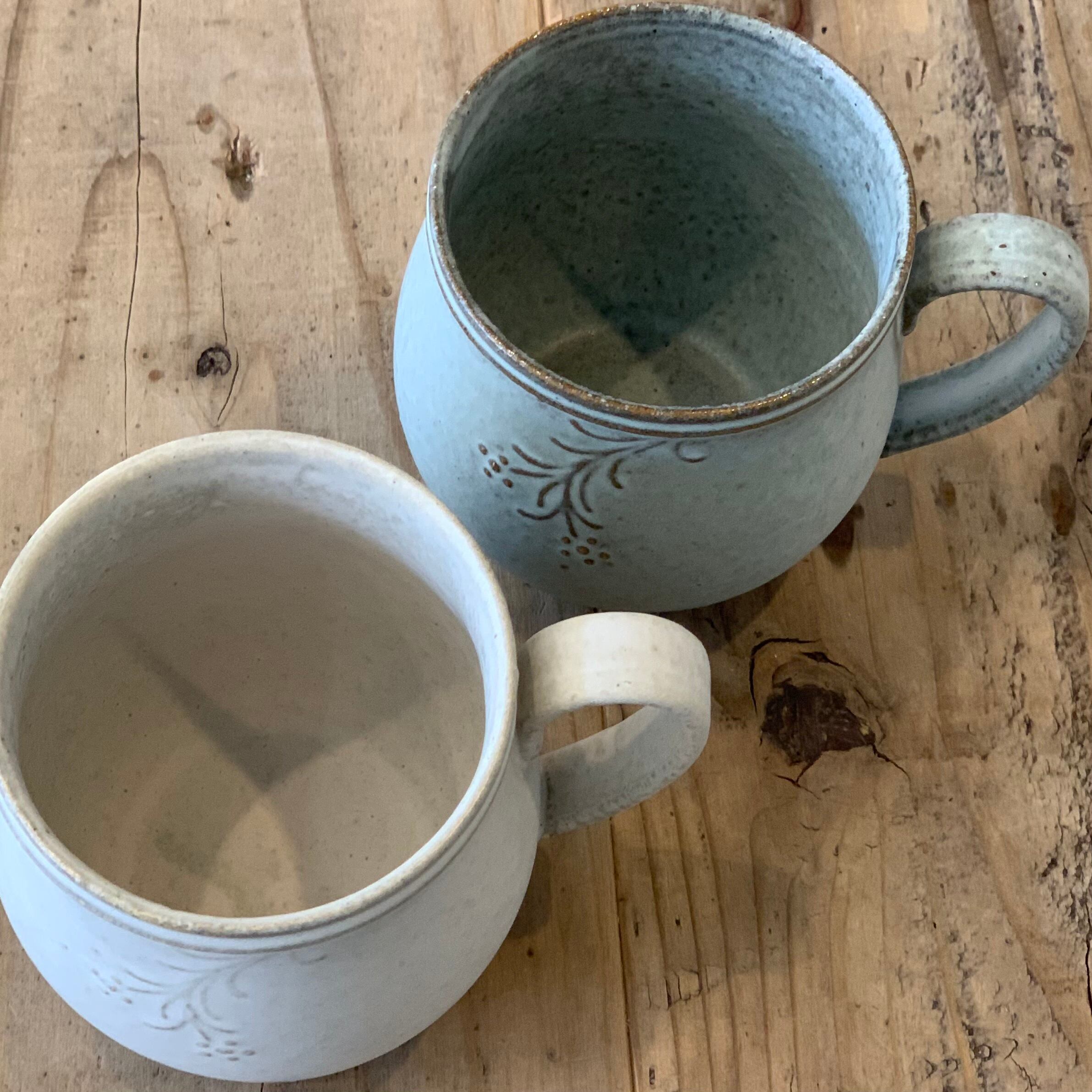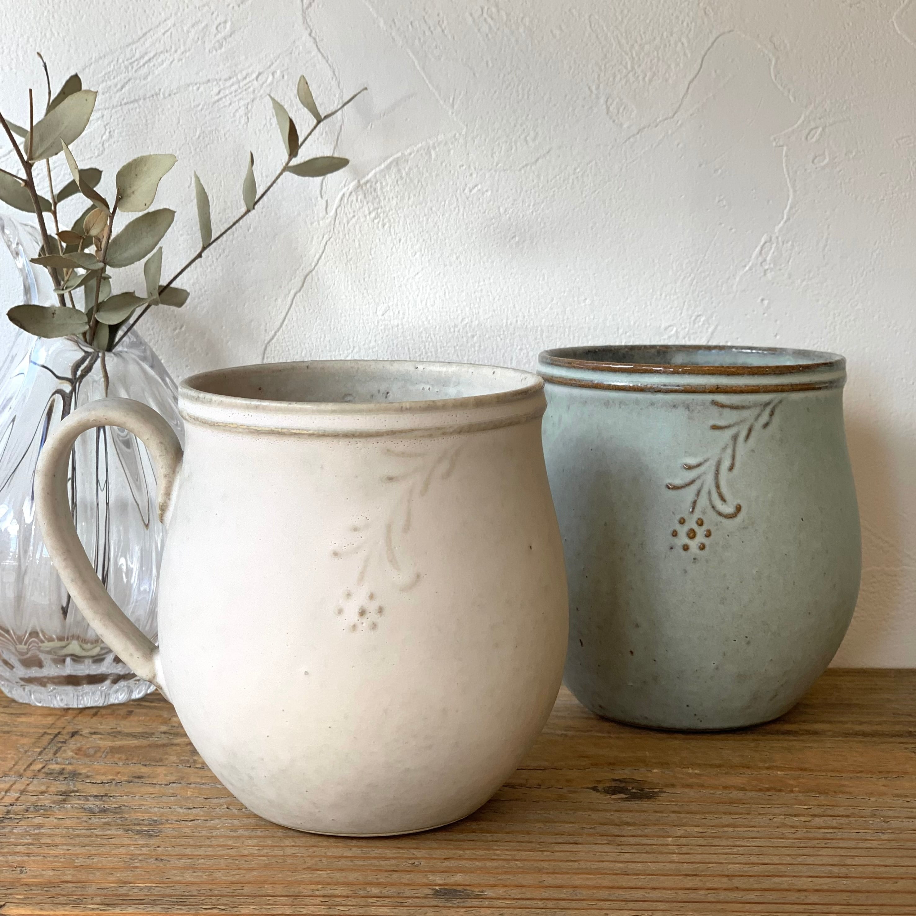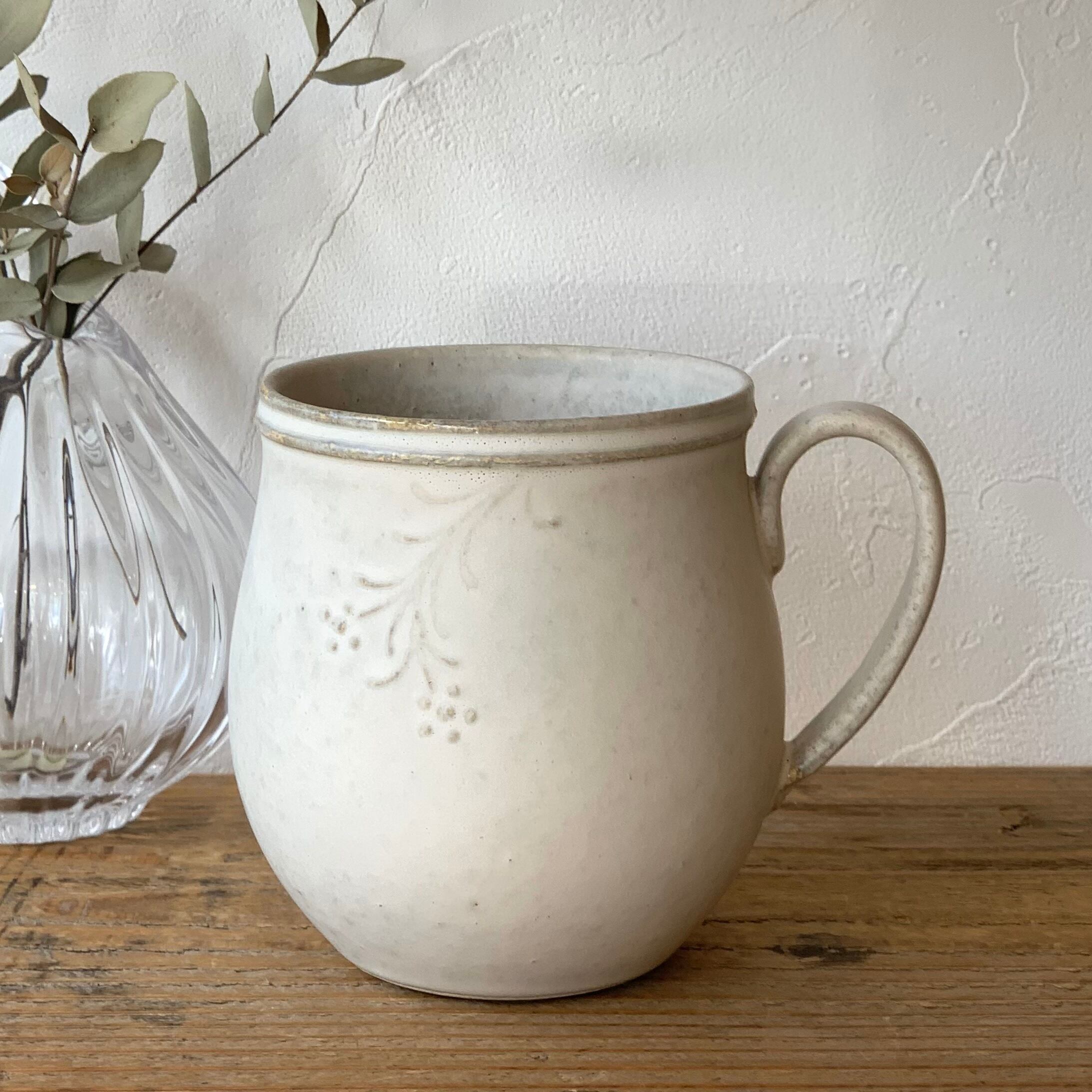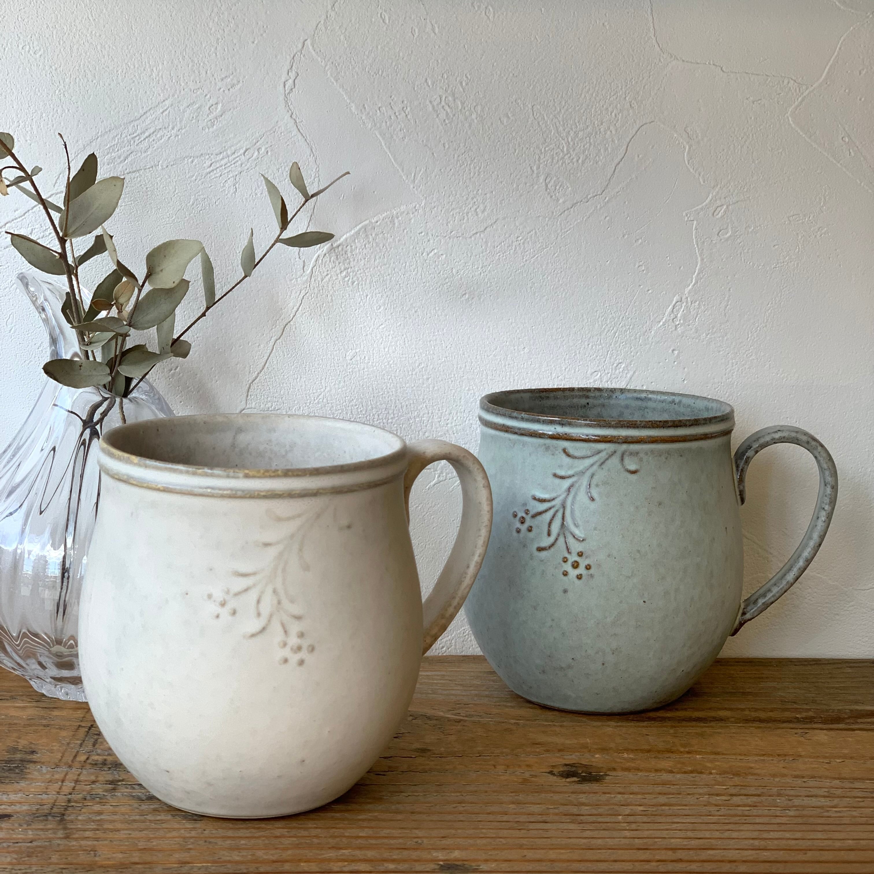 アクセントに付けられた花模様は、立体的でありながマグカップ全体に溶け込むような仕上げになっており、光の中角度で陰影が濃く見えたりするなど、奥ゆかしさを感じられます。