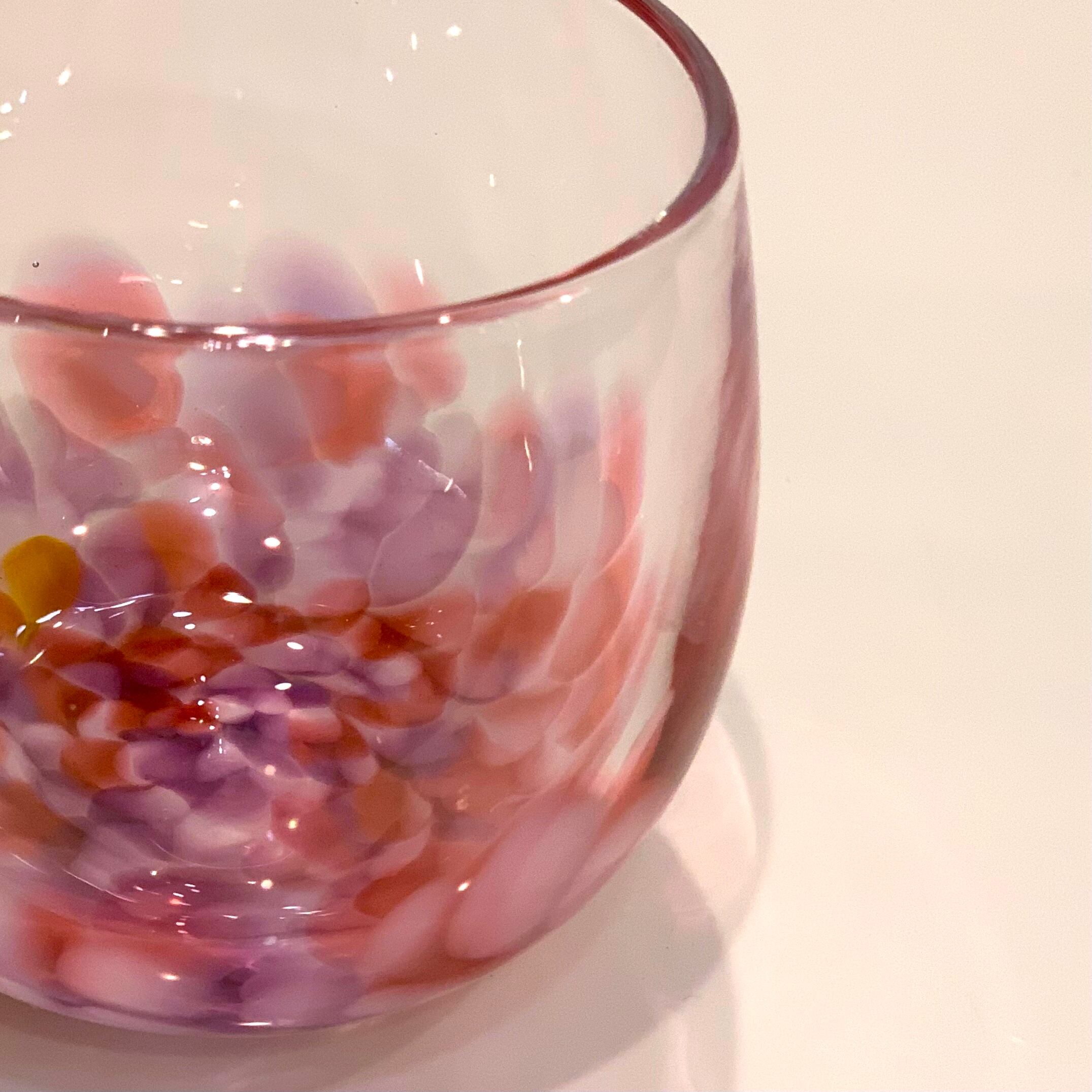 それぞれの花をほんの少し、手のひらに持って帰るようなイメージを込めて作られたグラスは、色の鮮やかさと光の煌めきで、いつものテーブルの上に香りまで運んできてくれそうです。
