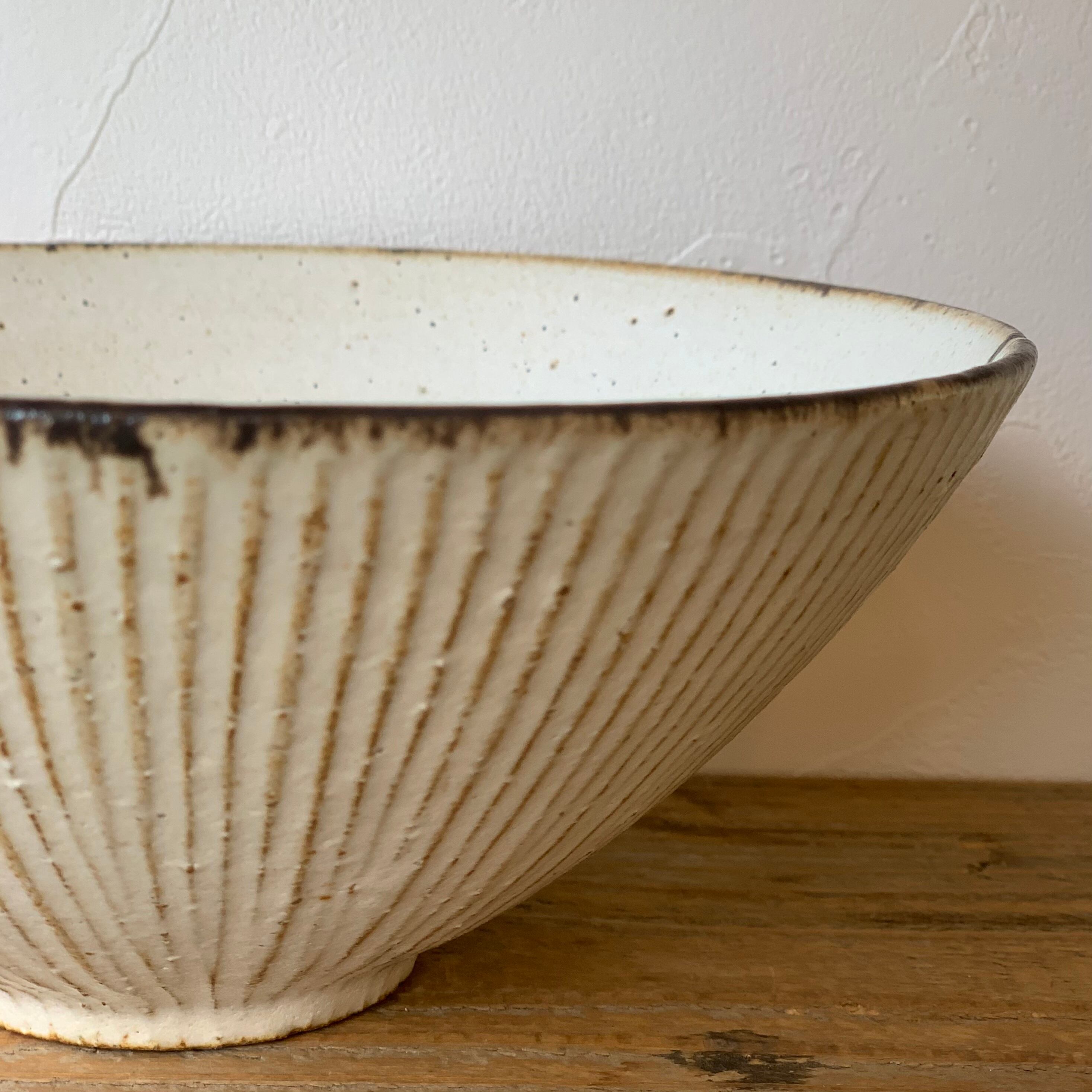 京焼で学んだろくろの技術と質感を重視した釉薬を活かし、普段使いのうつわを中心に作陶されている、神奈川県大磯町にあるこま製陶所・文山香菜江さんによるめん鉢。
